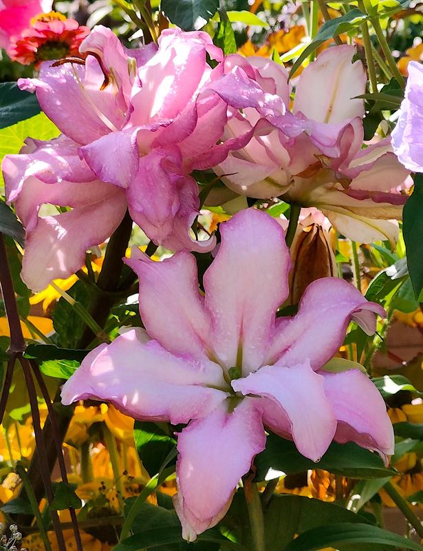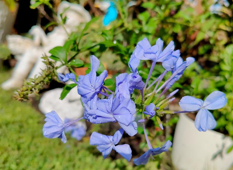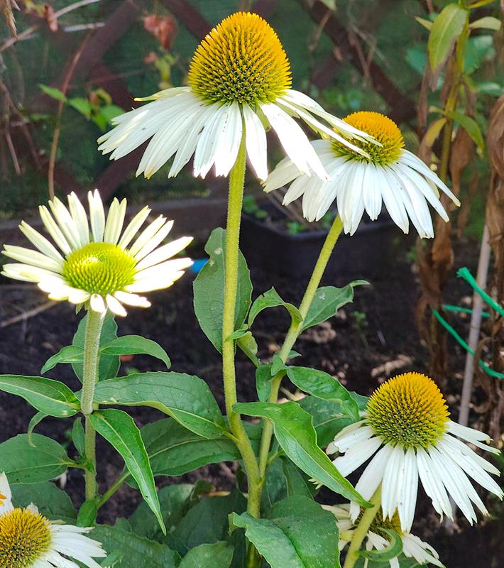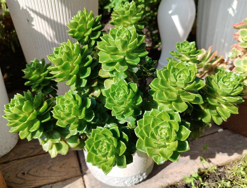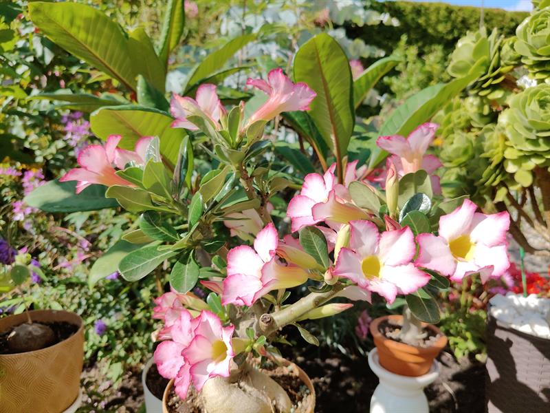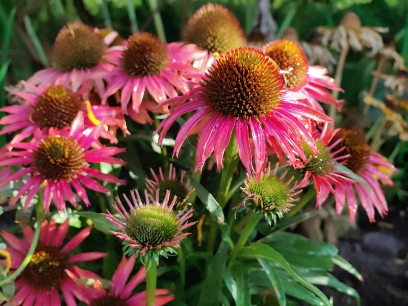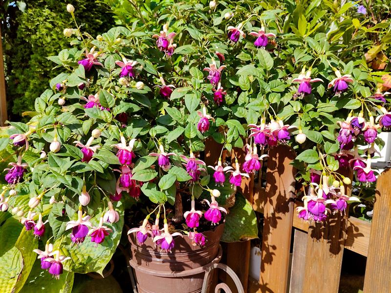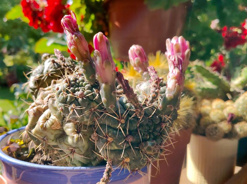 - Wilgotna ziemia sprawia, że przez cały sezon nie wymagają podlewania moje ulubione byliny: jeżówki, rudbekie, hibiskusy, gipsówki i słoneczniczki. Ale w donicach musimy hodować masę naszych egzotycznych roślin: odmiany eonium drzewiastego, róże pustyni, granatowiec, figę, mandarynkę, cytrynę, kaktusy, sukulenty - stwierdza p. Wioleta. - Nie tylko egzotyków mamy tu sporo... Eukaliptusy, plumerie, cleome, rącznik czerwonolisty, , strzałkowiec grzechotkowy, „lisie ogony" pokrywca, dalie. Każdy rarytas i ogrodnicza nowinka, obowiązkowo (!), muszą się znaleźć w naszym ogrodzie. Targi - od Barzkowic po „Pamiętajcie o ogrodach" - są wpisane na stałe w nasz kalendarz.