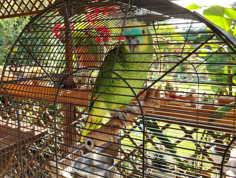 - W maju już jesteśmy na ogrodzie. Gdzie razem z nami przyjeżdżają psiaki oraz Klara - sama mówiąca o sobie Klaru, czyli amazonka niebieskoczelna. Pozostała szóstka papug - konura ognistobrzucha oraz nimfy - już na nas czekają, bo otulone w klatce zimują na działce - opowiadają pp. Wójcikowie. - Kochamy zwierzęta. Dokarmiamy ptaki, więc sporo ich odwiedza nasz ogród. Podobnie jak pożyteczne owady, tzw. zapylacze, dla których sadzimy mnóstwo miododajnych kwiatów, m.in. budleje, szałwie, werbeny, anyż. Nie ma nic lepszego, jak podglądanie przyrody. Obserwowanie zwierząt w ich naturalnych warunkach daje wytchnienie, a nawet staje się pasją.