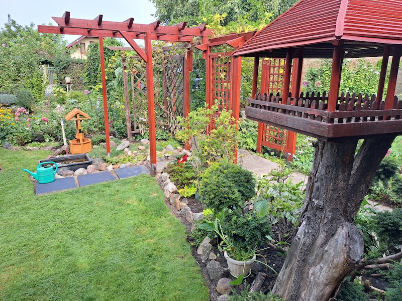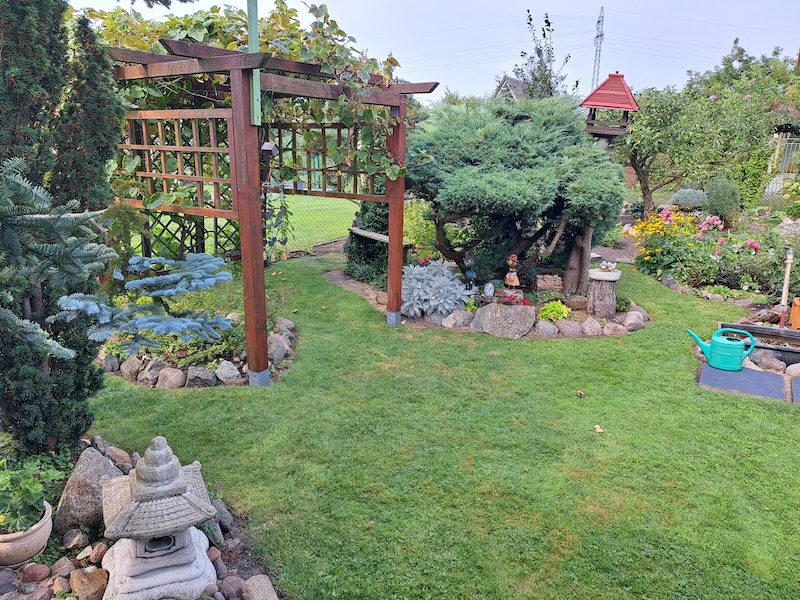 Ogród państwa Janiny i Marka Drewsów położony jest na Wyspie Puckiej w obrębie ogrodów działkowych „Stoczniowiec". To miejsce o charakterystycznym mikroklimacie. Powietrze tutaj jest bardziej rześkie niż w centrum miasta, z uwagi na bliskość wody i specyficzną torfową glebę. Dla Pani Janiny i Jej męża działka to miejsce wytchnienia i oaza prawdziwego spokoju.