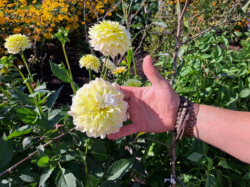W tym roku aura nie była łaskawa dla ogrodników. Wielu roślinom zaszkodziły wiosenne przymrozki. W ogrodzie rosną przede wszystkim kwiaty wieloletnie. Są to na przykład dalie georginie. Rośliny te pochodzą z Ameryki Południowej. Uprawiane były już w czasach przedkolumbijskich jako pasza dla zwierząt, a także jako rośliny ozdobne. W Europie modne były szczególnie w pierwszej połowie XIX wieku. Ich nazwa pochodzi od nazwiska szwedzkiego botanika Andersa Dahla.
