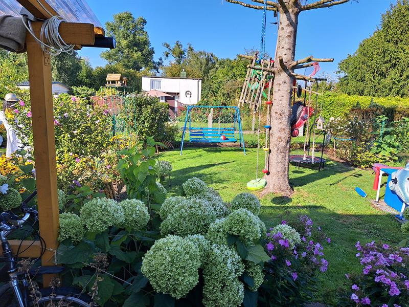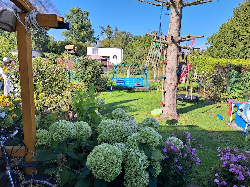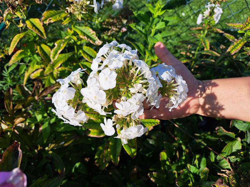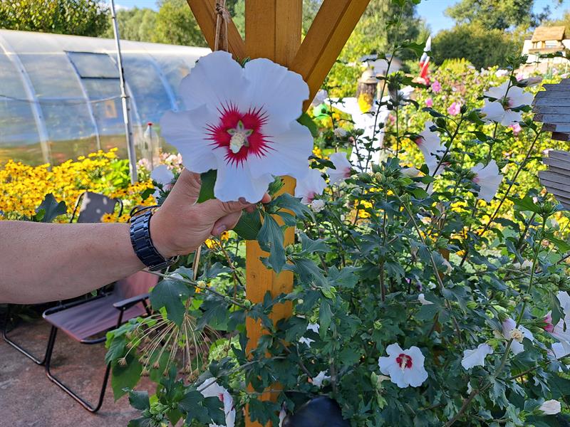 W ogrodzie państwa Niesynów zawsze kwitną kwiaty. Kiedy jedne przekwitają, pojawiają się następne. Najpierw przebiśniegi i krokusy, potem tulipany, żonkile, piwonie majowe, te pierwsze pomarańczowe bulwy, później piwonie czerwcowe - białe, różowe, następnie ulubione kwiaty pana Rafała, czyli floksy - białe i różowe - one pięknie pachną. Mąż pani Moniki poza floksami lubi także róże. Jego mama miała na imię Róża. Na działce rośnie też hibiskus.