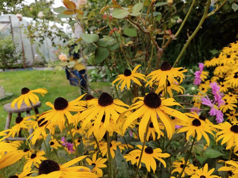 Dopiero po dekadzie „cywilizowania” działki udało się ją ogrodzić i postawić altanę, która mimo wszystko jeszcze długo – czyli zanim udrożniono okoliczne kanały – w grząskim gruncie się zapadała. To wokół niej toczy się działkowe życie: rosną drzewa owocowe, powstają kolejne kwiatowe rabaty. Teraz o uwagę zabiegają nie tylko okazałe dalie i cynie, ale również szałwie, astry, rudbekie i werbeny patagońskie.