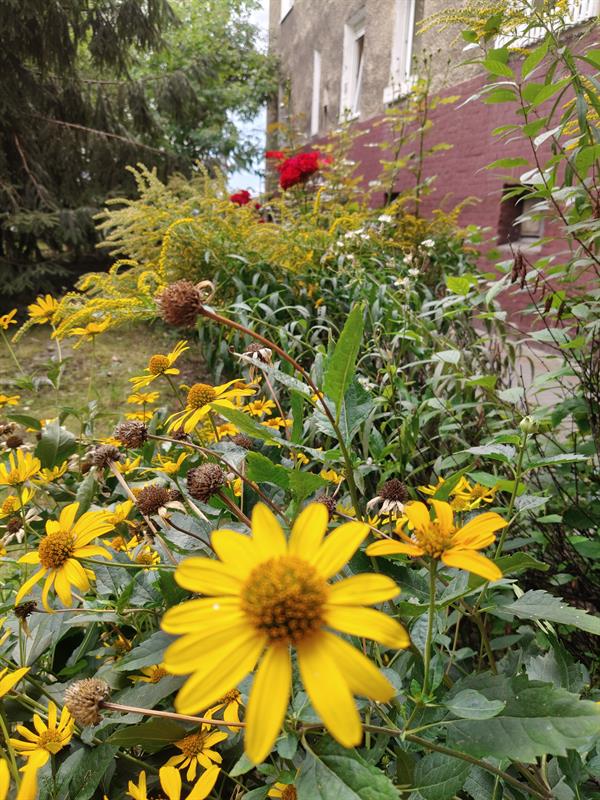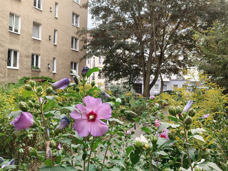 Niestety, właśnie teraz, gdy podwórkowa różnorodność sięgnęła zenitu, doszło do poważnej awarii sieci kanalizacyjnej w kamienicy. Ciężki sprzęt dosłownie rozjechał centralny z podwórkowych klombów. Pan Franciszek ratował, co mógł, ale nieodwracalnych zniszczeń jest ogrom.