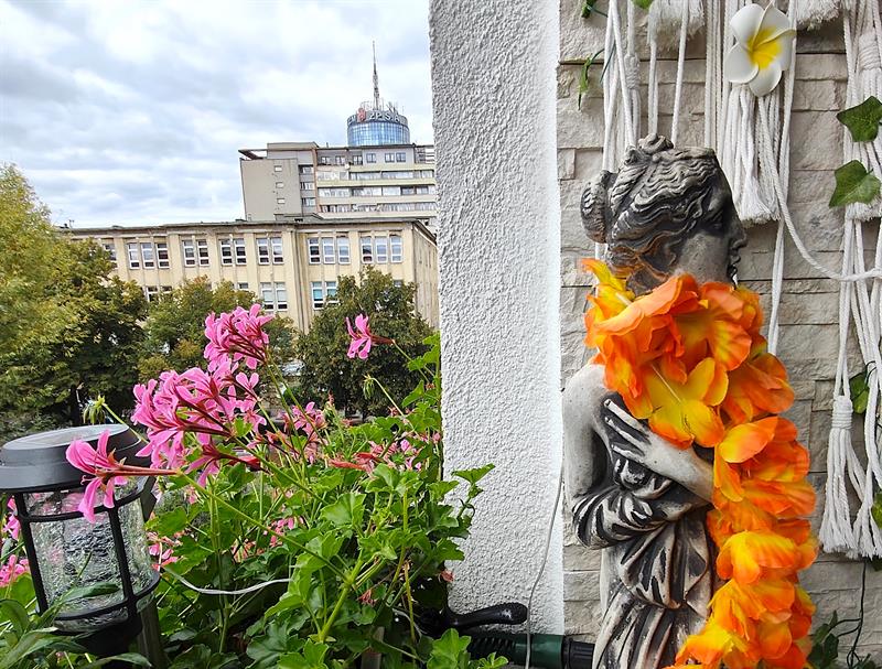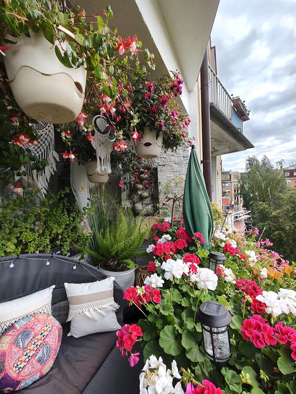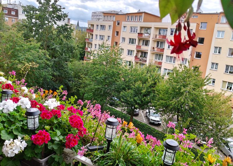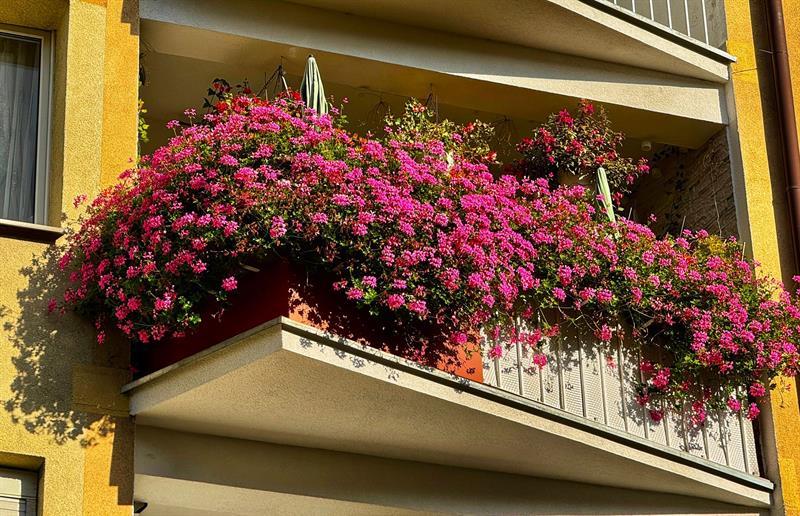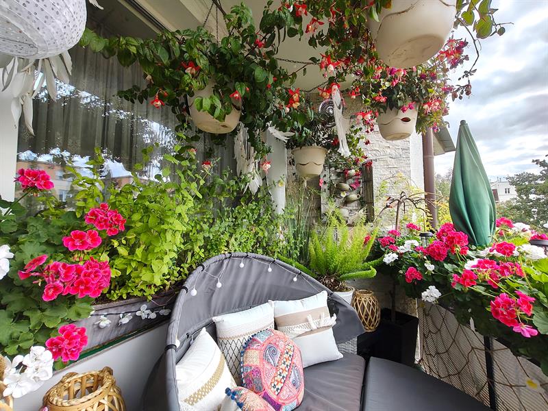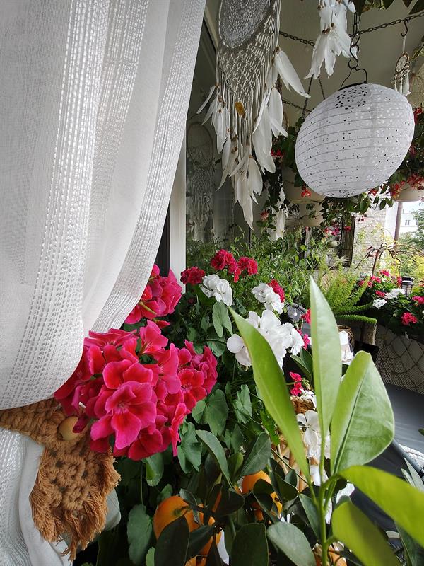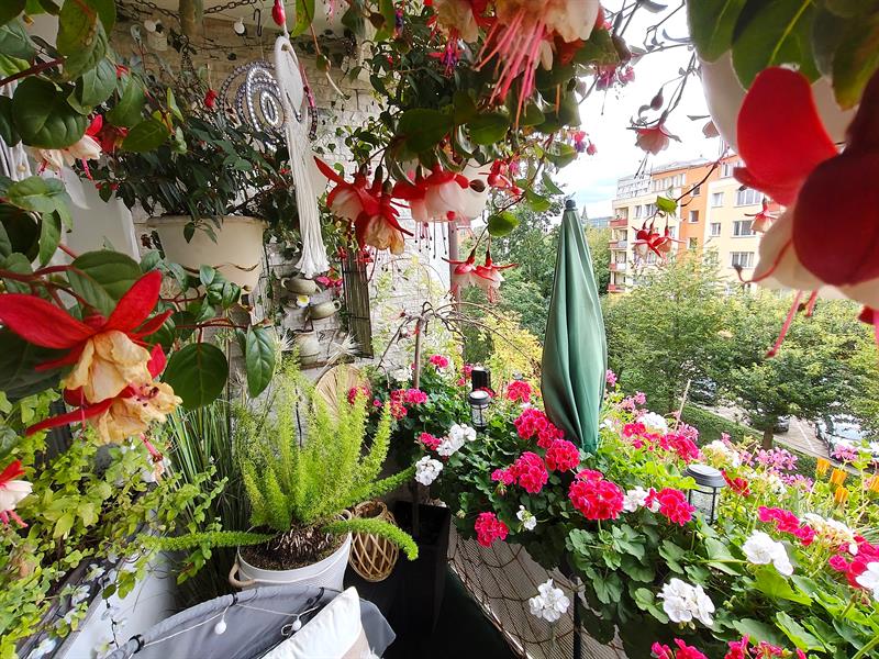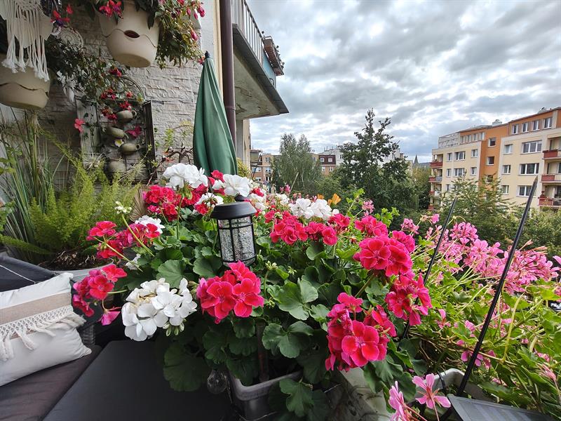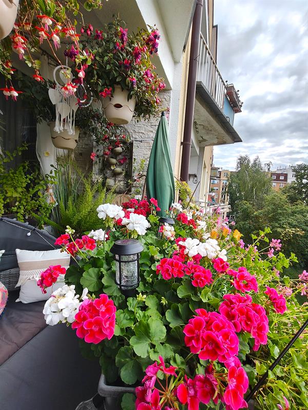– Z grupą sąsiadów tworzymy coś na kształt balkonowego kolektywu. Każdego roku uzgadniamy, jakie kwiaty będziemy sadzili do skrzynek. Zawsze stawiałam na czerwone pelargonie, nawiązując do ukochanych kwiatów mego taty. Ale tym razem uległam propozycji Tatiany. Na zewnętrznym rusztowaniu mam „studium w różu”, czyli 70 kaskadowych pelargonii właśnie w tym kolorze. Fantastyczne i niezwykle żywotne sadzonki od niezawodnej Luizy z Nowogardu. Jednak we wnętrzu mojego „ogrodu na wysokościach”, w tym roku, niepodzielnie króluje moje wymarzone Bali – opowiada p. Beata.