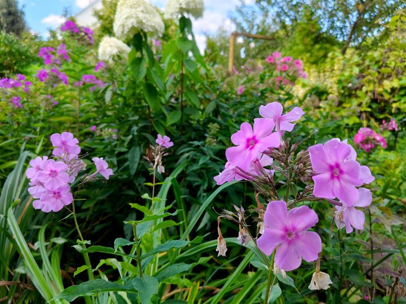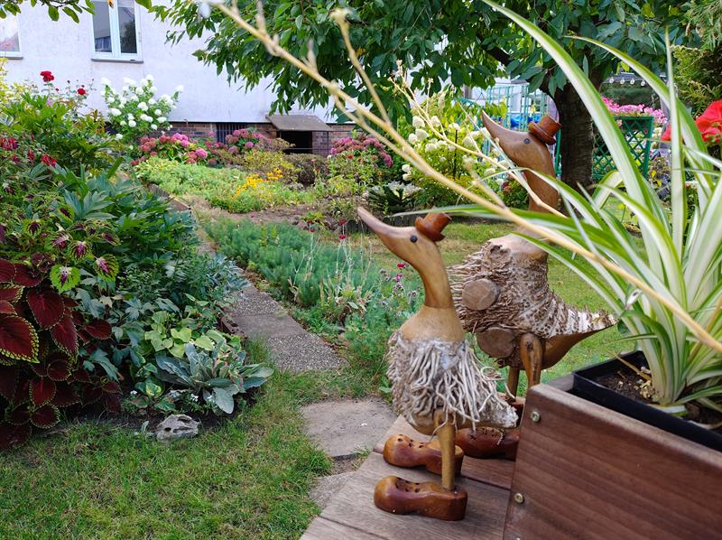 Ogród wprawdzie daleki jest od formalnego, ale starannie wypielęgnowany.