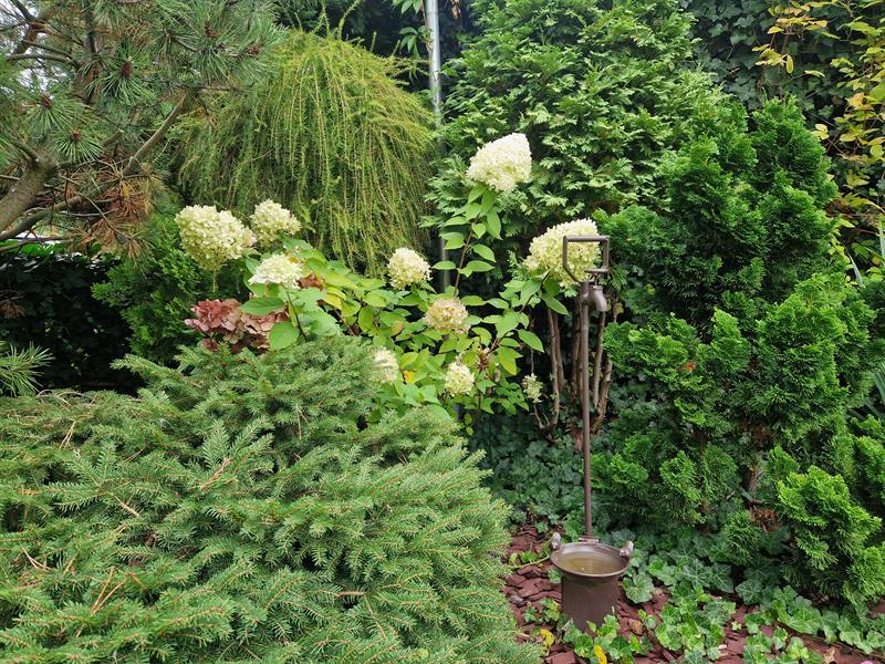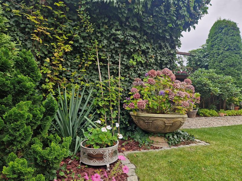Najpierw wraz z mężem posadzili tuje przy płocie. Dziś są one wysokie, zasłaniają widok dla wścibskich oczu, choć okolica jest spokojna, wręcz sielska. Teraz ogród pełen jest hortensji, które pani Agnieszka uwielbia.