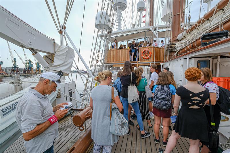 Na czas pobytu w naszym mieście załogą czteromasztowca opiekować się będą oficerowie łącznikowi – wolontariusze. Do Szczecina z okazji Dni Morza przypłynął także „Fryderyk Chopin”, kilka Oldtimerów oraz największy okręt polskiej floty wojennej ORP „Toruń” – łącznie ponad 30 jednostek żaglowych i motorowych. Zacumowane będą m.in. na północnym odcinku nabrzeży przy ulicy Jana z Kolna w okolicach dworca morskiego, przy nabrzeżu Starówka (płn. jego część) oraz przy nabrzeżu Bułgarskim.