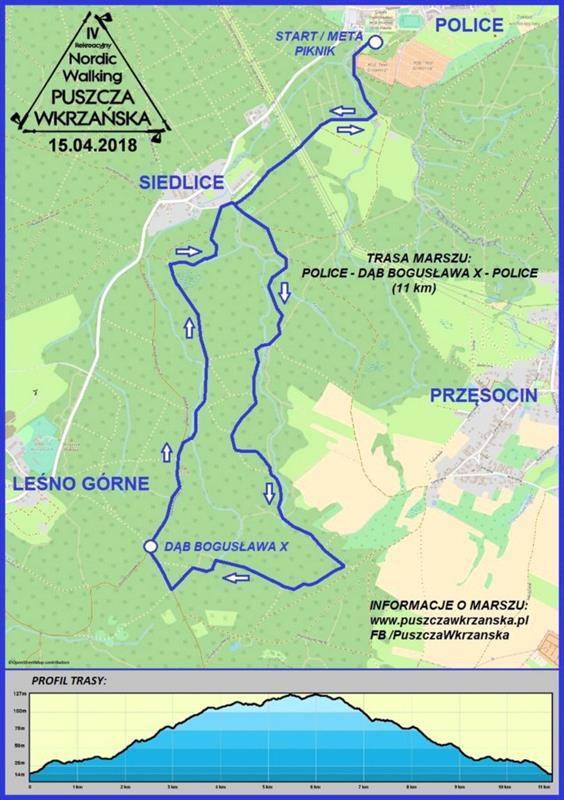 Uczestnicy będą mieli do pokonania 11 kilometrów malowniczej trasy. Miejscem startu, jak i mety będzie polana sportowa przy Szkole Podstawowej nr 8 w Policach. Poza losowaniem nagród i wspólnym piknikiem organizatorzy przewidzieli liczne atrakcje.