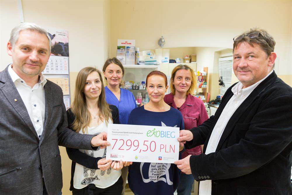 Ponad siedem tysięcy złotych otrzymało Towarzystwo Opieki nad Zwierzętami w Szczecinie. Czek na tę kwotę przekazali Sebastian Kaczmarek - dyr. ds. środków krajowych Wojewódzkiego Funduszu Ochrony Środowiska i Gospodarki Wodnej oraz Tomasz Kowalczyk - naczelny Kuriera Szczecińskiego.