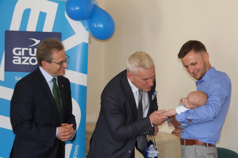 Na zdjęciu: Od lewej Prezes Grupy Azoty Zakłady Chemiczne Police dr Wojciech Wardacki, Wiceprezes Tomasz Panas oraz Paweł Piwowarczyk z synkiem.