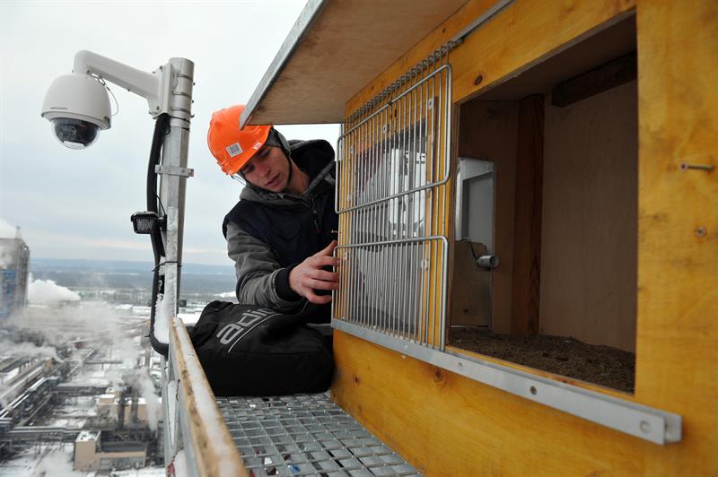 Dwie kamery zamontowano na osiemdziesiątym metrze 200-metrowego komina elektrociepłowni Grupy Azoty Police, gdzie od dziesięciu lat mają gniazdo sokoły wędrowne. Jedna z kamer została umieszczona wewnątrz skrzynki lęgowej, druga, obrotowa, będzie pokazywać otoczenie siedziby tych drapieżnych ptaków.