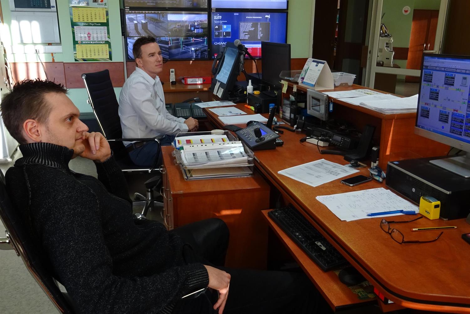 Dyżurujący spoglądają w monitory komputerowe, na których wyświetlają się niezrozumiałe dla osób z zewnątrz schematy i tabele. Na dużych ekranach, wiszących na ścianach, mają podgląd na to, co dzieje się w otoczeniu zakładów – na parkingi, punkty wjazdowe na teren firmy.