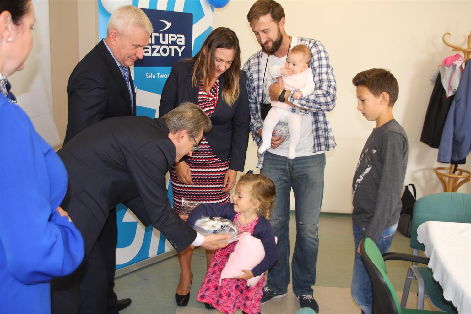 Na uroczystym spotkaniu rodzin, z udziałem prezesa Grupy Azoty Police dr. Wojciecha Wardackiego, zarząd spółki złożył gratulacje rodzicom i ich maluszkom oraz wręczył wyprawki dla niemowląt.