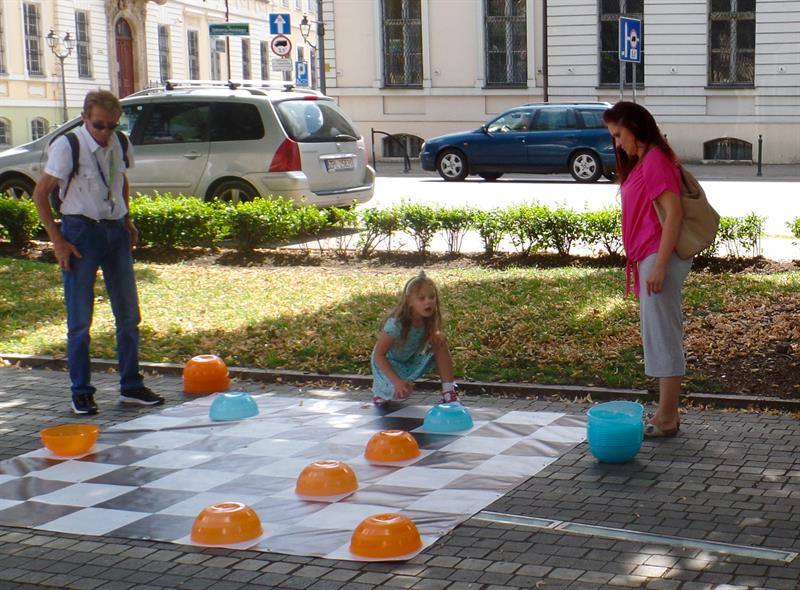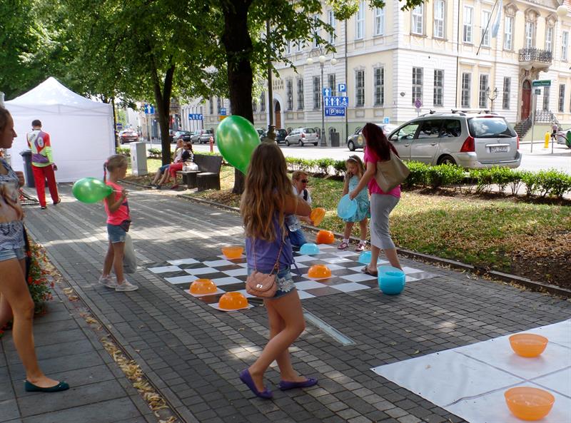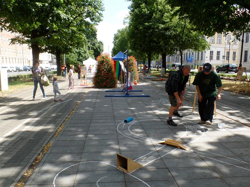 Zatem na festynie ph. „Aktywny Szczecin" można nie tylko poszaleć na trzepaku, pograć w gumę i ścigać się kapslami, ale również zagrać w plenerowe warcaby czy postrzelać piłką. Jest też scena, a na niej energetyczna muzyka, bębny, pokazy brazylijskiej sztuki walki Capoeira oraz jogi, jak również trening zumby. Opodal nie tylko sprzęt do ćwiczenia tężyzny fizycznej, jak choćby „wioślarze", ale również propozycje szczecińskich klubów fitness i domu seniora. Nie zabrakło propozycji zdrowego jadła, czyli wegetariańskich przekąsek, jak również obleganego stoiska medycznego, gdzie można skorzystać z bezpłatnych porad dietetyka oraz psychologa, pomiarów poziomu ciśnienia i cukru we krwi.