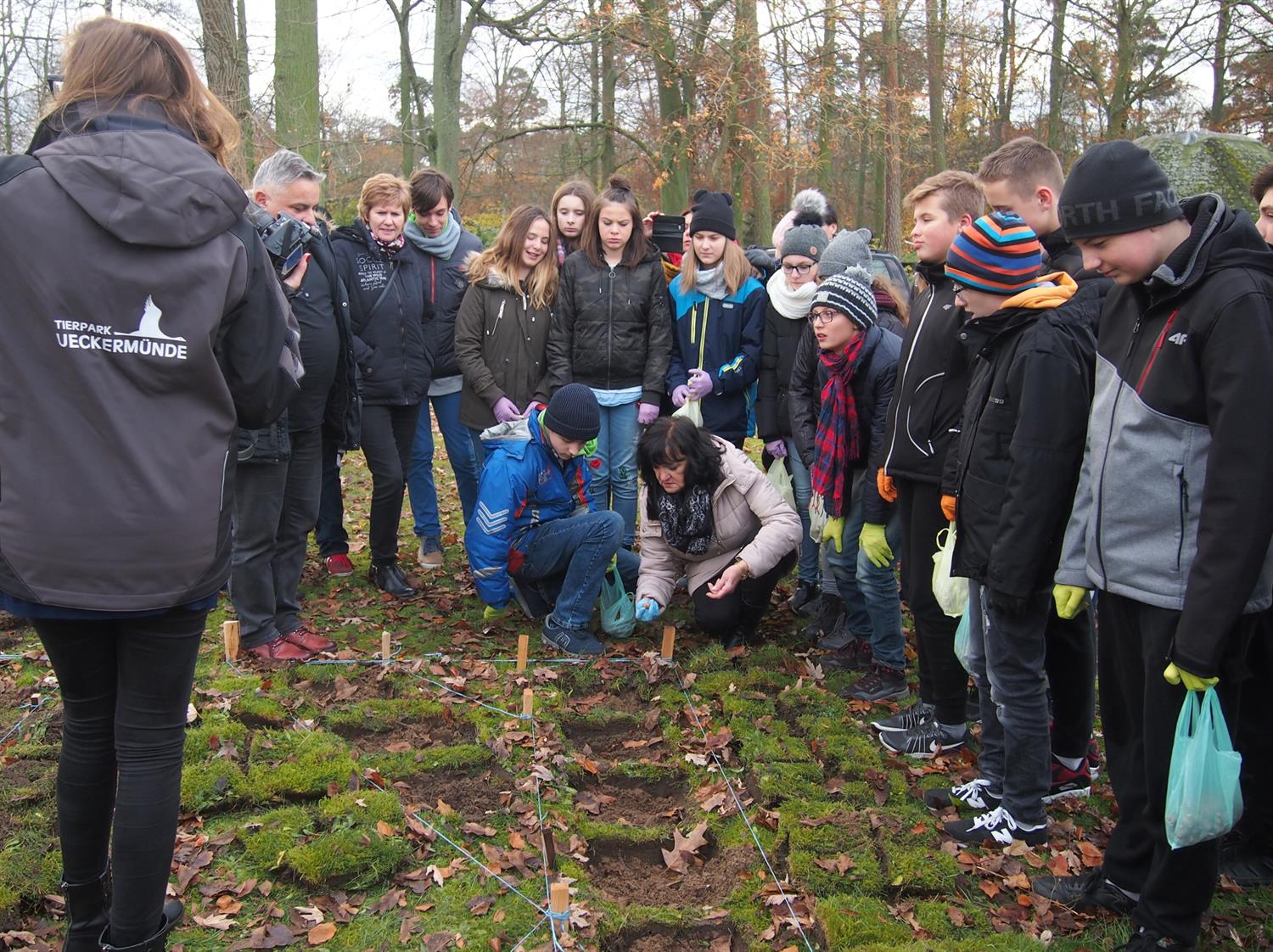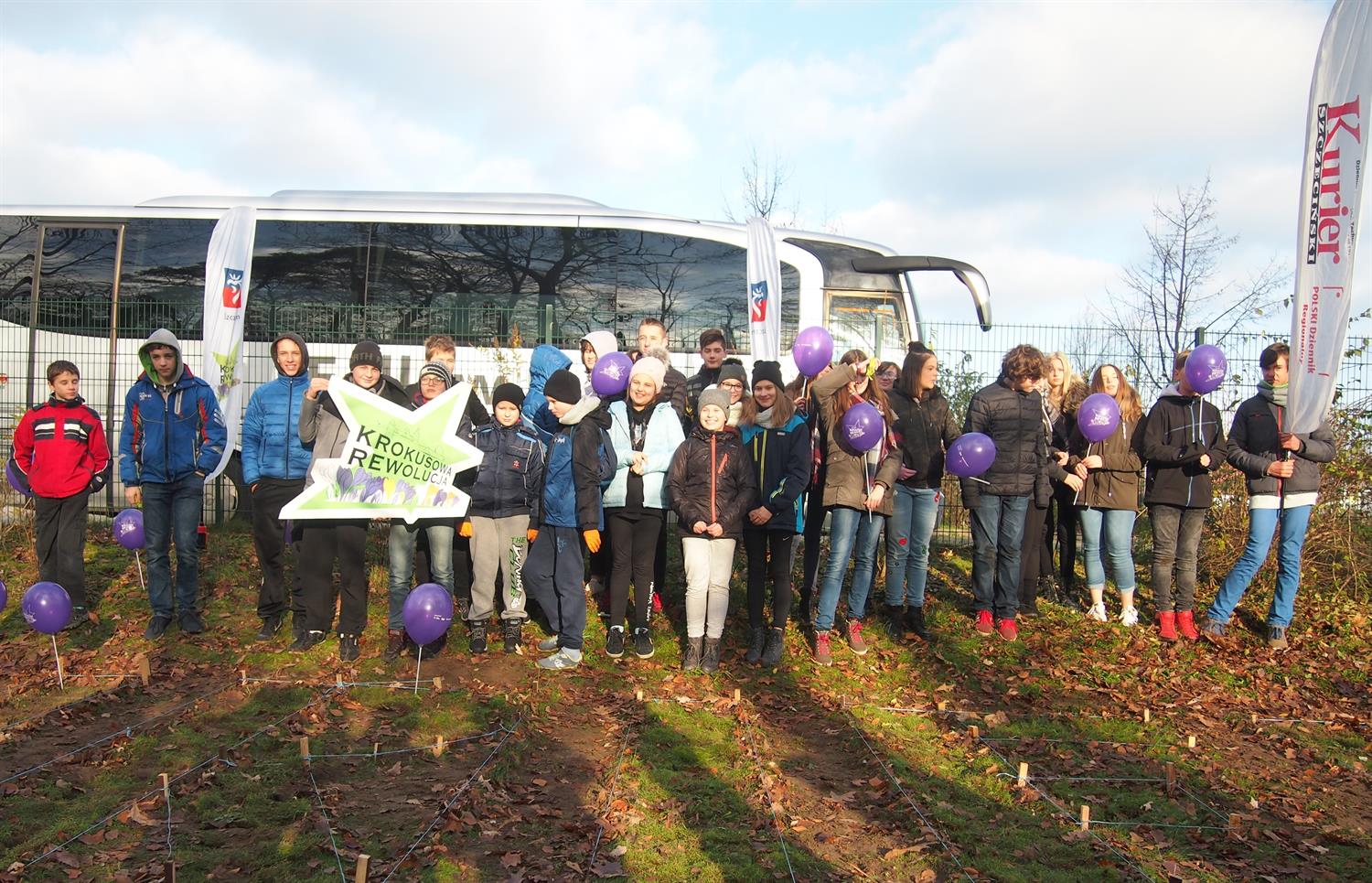 Krokusy sadzili uczniowie kl. VII a Szkoły Podstawowej nr 7 im. Heleny Raszki w Szczecinie, którzy do Ueckermünde pojechali pod opieką Marty Ponińskiej i Beaty Kułkiewicz, nauczycielek języka niemieckiego i angielskiego, oraz uczniowie klasy VIII Greifengymnasium w Ueckermünde, którzy przyszli do ogrodu ze swoją nauczycielką Manuelą Boikow. Uczniowie ze Szczecina od pierwszej klasy uczą się niemieckiego, a uczniowie z Ueckermünde od roku uczą się polskiego. Dwoje z nich, Izabela i Aleksander, mają rodziny w Polsce.
