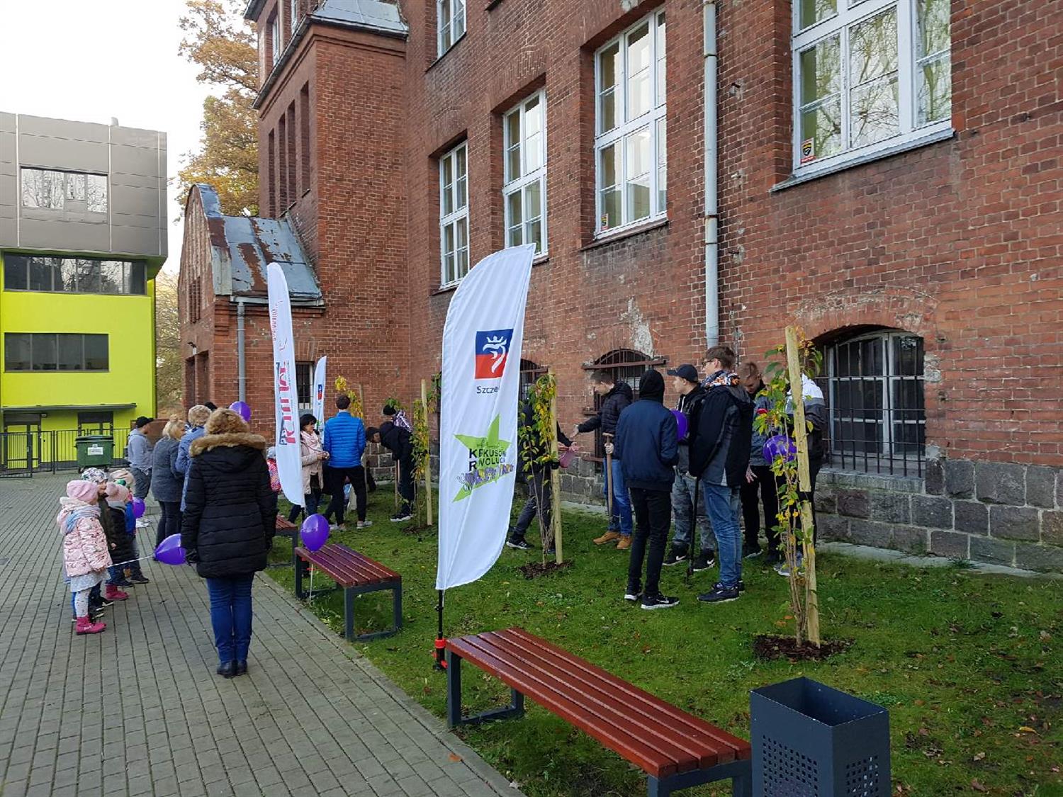 W sadzeniu tysięcy kwiatowych cebul pomogli sąsiedzi, czyli uczniowie Technikum Technologii Cyfrowych (TTC). Następnie młodzież pod sztandarem „Kuriera" i „Krokusowej rewolucji" przeniosła się kilkadziesiąt metrów dalej, na przyszkolny dziedziniec. Tu posadzili 750 cebulek, których zakup został sfinansowany z budżetu Szczecina.
