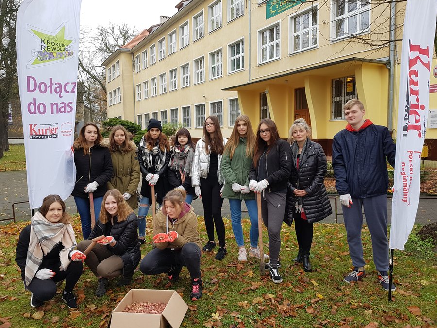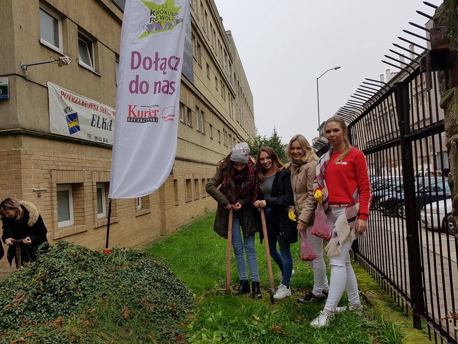Na zaproszenie klasy Ia Liceum Ogólnokształcącego z Oddziałami Integracyjnymi Krokusowa Rewolucja zawitała na al.Wojska Polskiego w Szczecinie. Przed budynkiem szkoły posadziliśmy 750 krokusowych cebulek.