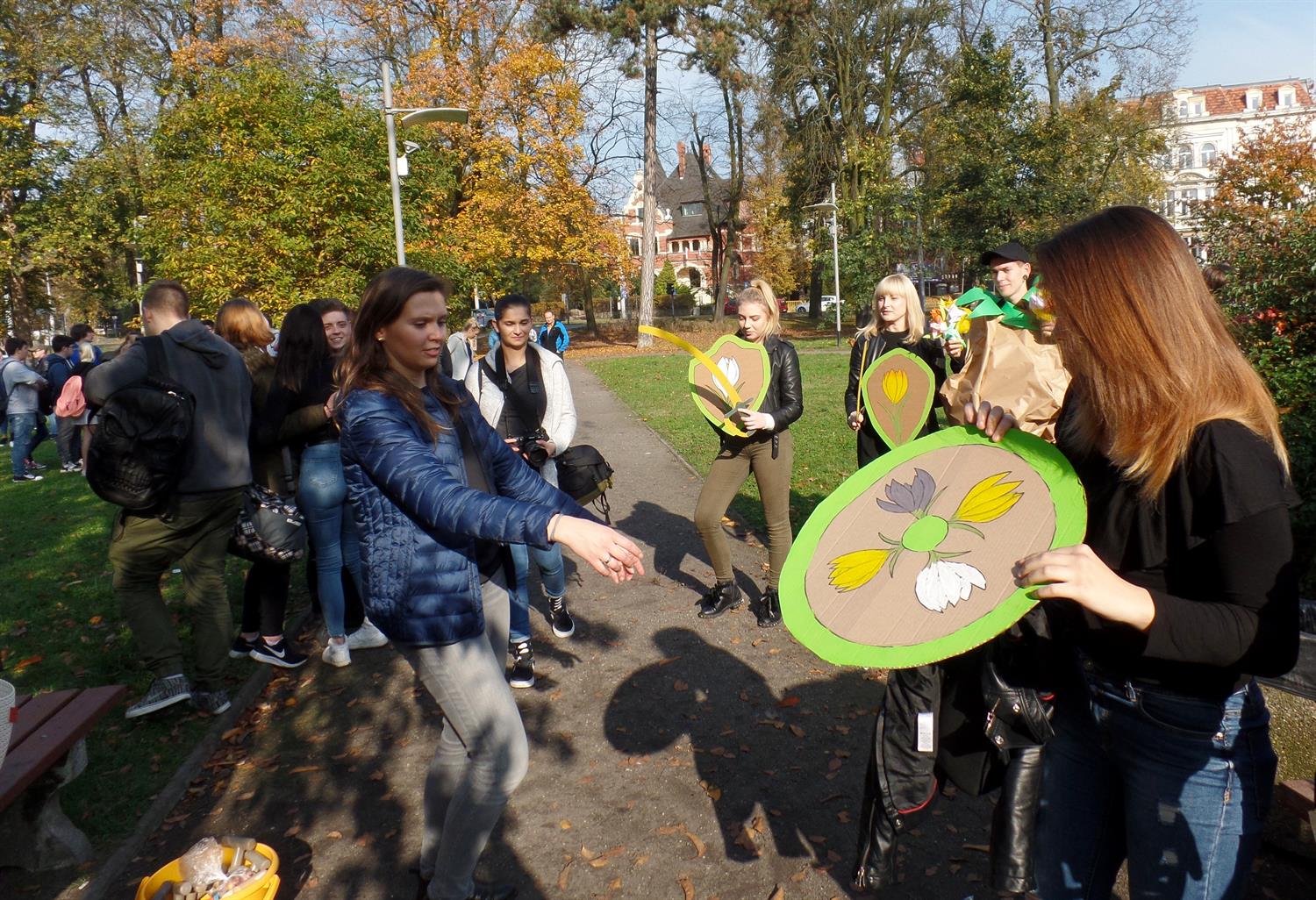 Rycerze „Krokusowej rewolucji" na pl. Gałczyńskiego, czyli uczniowie i kadra Technikum TEB Edukacja w Szczecinie.