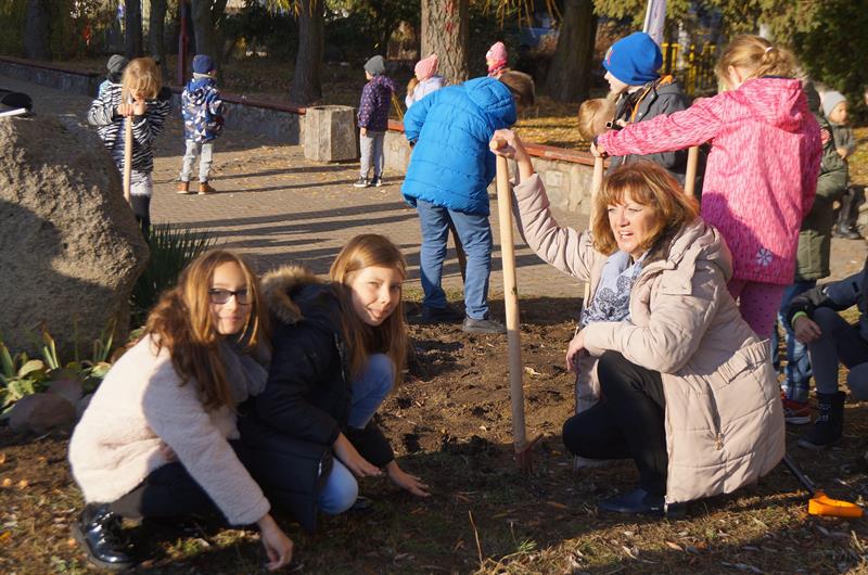 Uczniowie oraz przedszkolaki otrzymali kwiatowe cebulki od Stowarzyszenia Szczecin dla Pokoleń w ramach Inicjatywy Lokalnej oraz pomysłodawczyni Krokusowej Rewolucji Marii Myśliwiec.