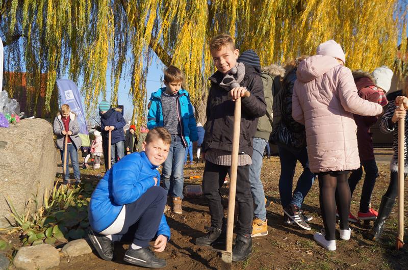 Również w piątek uczniowie klasy VII E Szkoły Podstawowej nr 51 posadzili pół tysiąca szafranowych cebul tuż przed wejściem do szkoły. Pracę nadzorowała wychowawczyni i jednocześnie nauczyciel biologii Izabela Kępczyńska-Sitka.