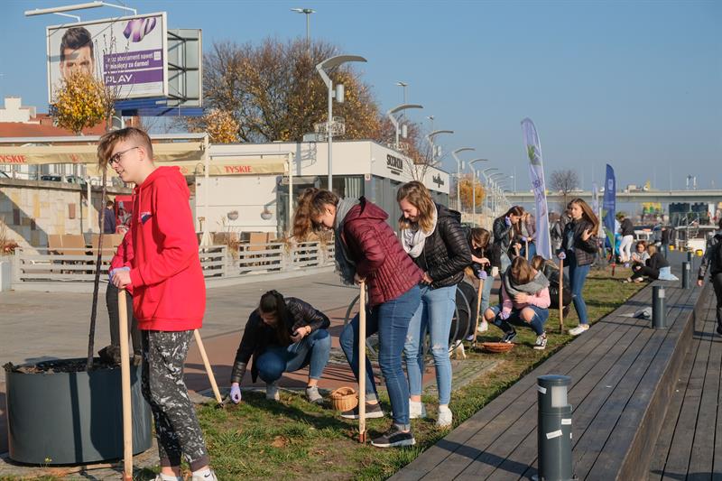 - Wcześniej bardzo chciałam posadzić krokusy na skarpie na Wałach Chrobrego - mówi Maria Myśliwiec, pomysłodawczyni akcji. - Niestety tam nie mogły nam pomagać dzieci. W związku z tym wybraliśmy bulwary. Nie mogliśmy dostać odpowiedzi, kto jest zarządcą tego pasa zieleni. Stwierdziliśmy, że skoro to rewolucja, to po prostu zaprosiliśmy dzieci z Gimnazjum nr 39, posadziliśmy cebule i już.