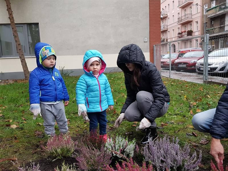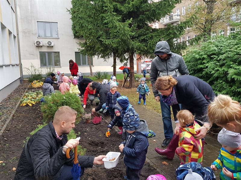 To nie był koniec niespodzianek. Po chwili dołączyły kolejne dzieci wraz z rodzicami – akcja nabrała rozmachu. Posadzonych zostało 500 krokusowych cebulek – otrzymanych w ramach realizacji inicjatywy lokalnej. Ponadto w glebie znalazło się kolejnych 200 cebulek tych kwiatów, a także tulipanów oraz kilkadziesiąt wrzosów dostarczonych przez rodziców.