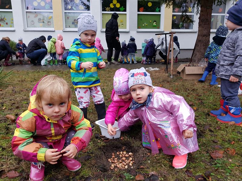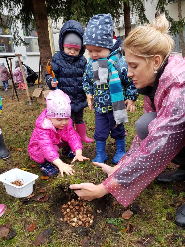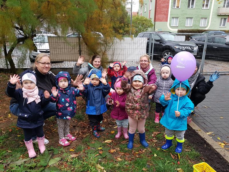 – Dzięki wspólnemu wysiłkowi szafranowe cebulki trafiły w wyznaczone miejsca, gdzie wiosną zakwitną wielokolorowymi bukietami. Powstały też piękne wrzosowe klomby – komentował pan Michał, tata Michalinki. – Jestem pewien, że nasz żłobek w kolejnych latach również będzie brał udział w „Krokusowej rewolucji”.