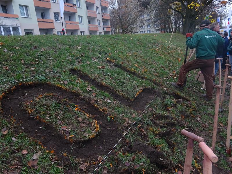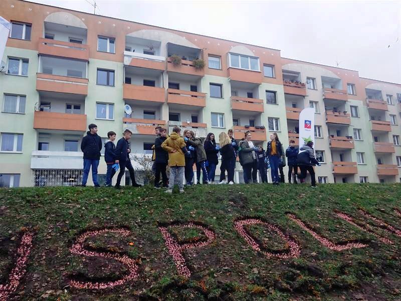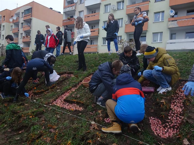 Sadzenie szafranów zajęło niecałą godzinę. Jednak to nie był koniec pracy dla uczniów - po skończeniu napisu posadzili jeszcze 500 cebul na zieleńcu przy swojej szkole.