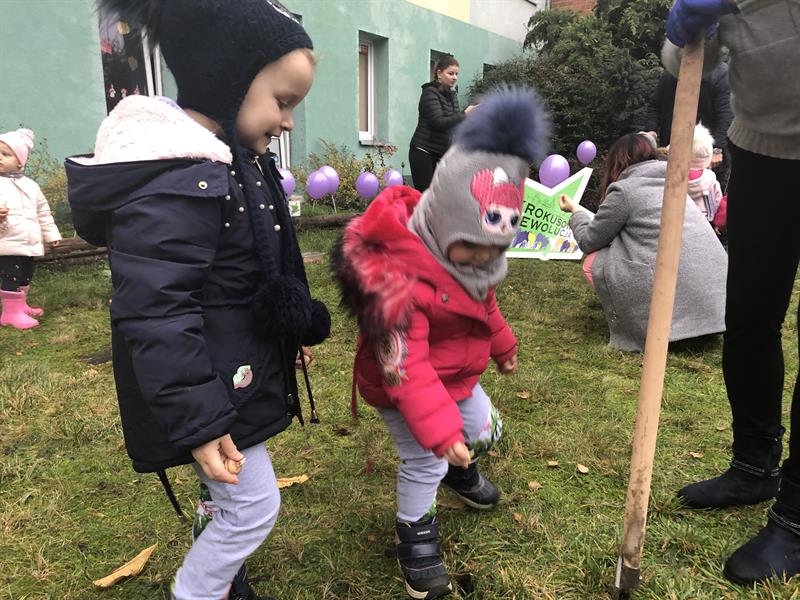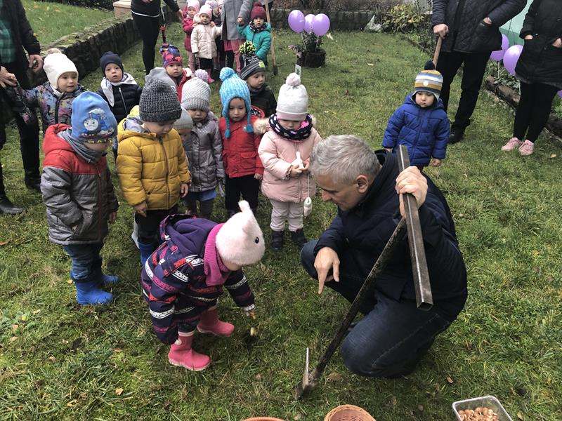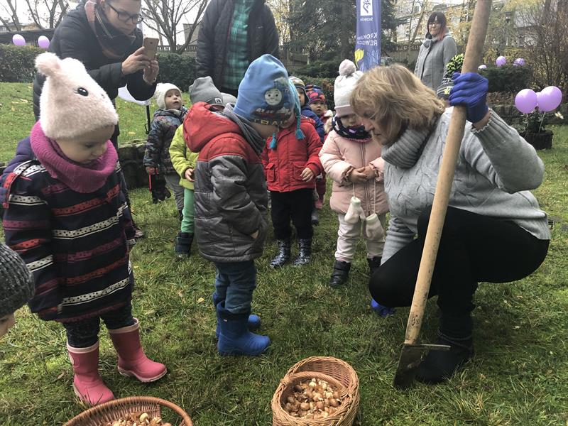 Na zdjęciu: Małe Omnibuski ochoczo sadziły krokusowe cebulki.