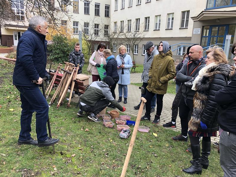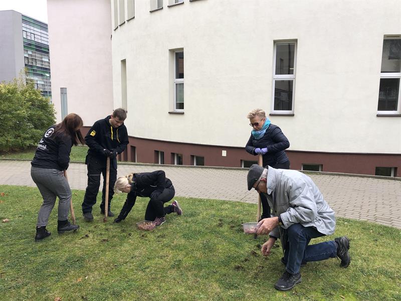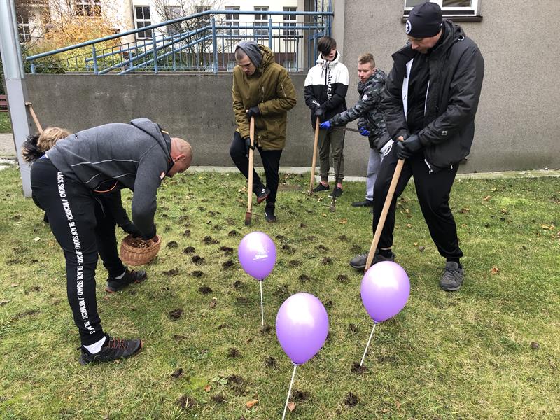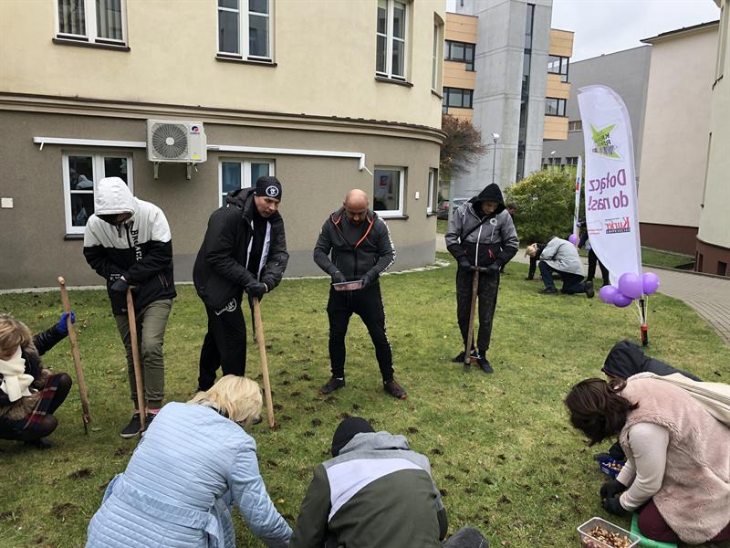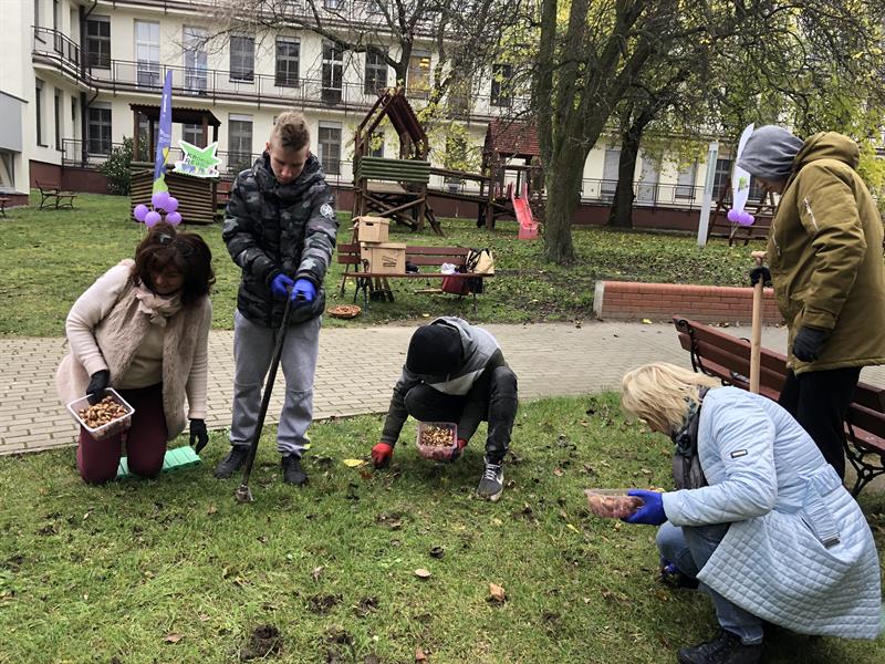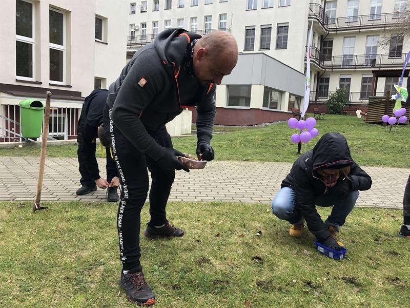Na zdjęciu: W niecałe 20 minut posadzono 1500 cebulek w ogrodzie Oddziału św. Mikołaja.