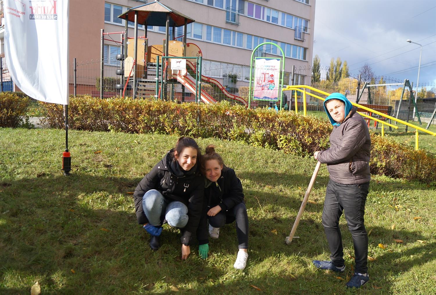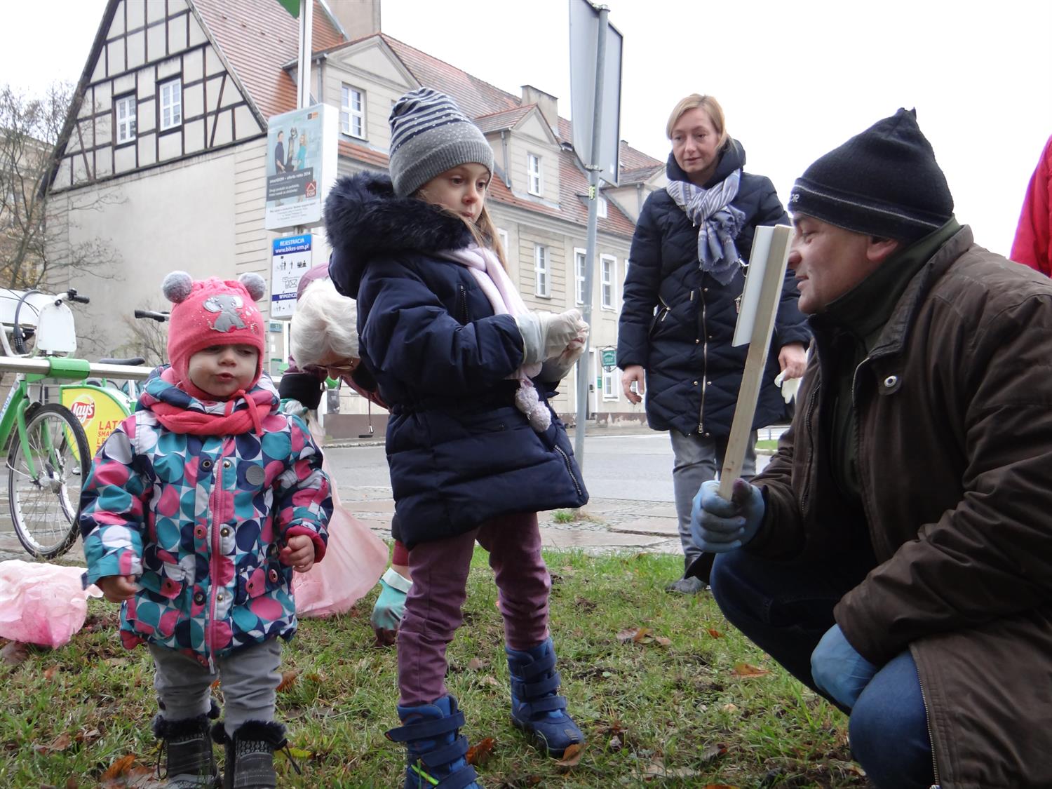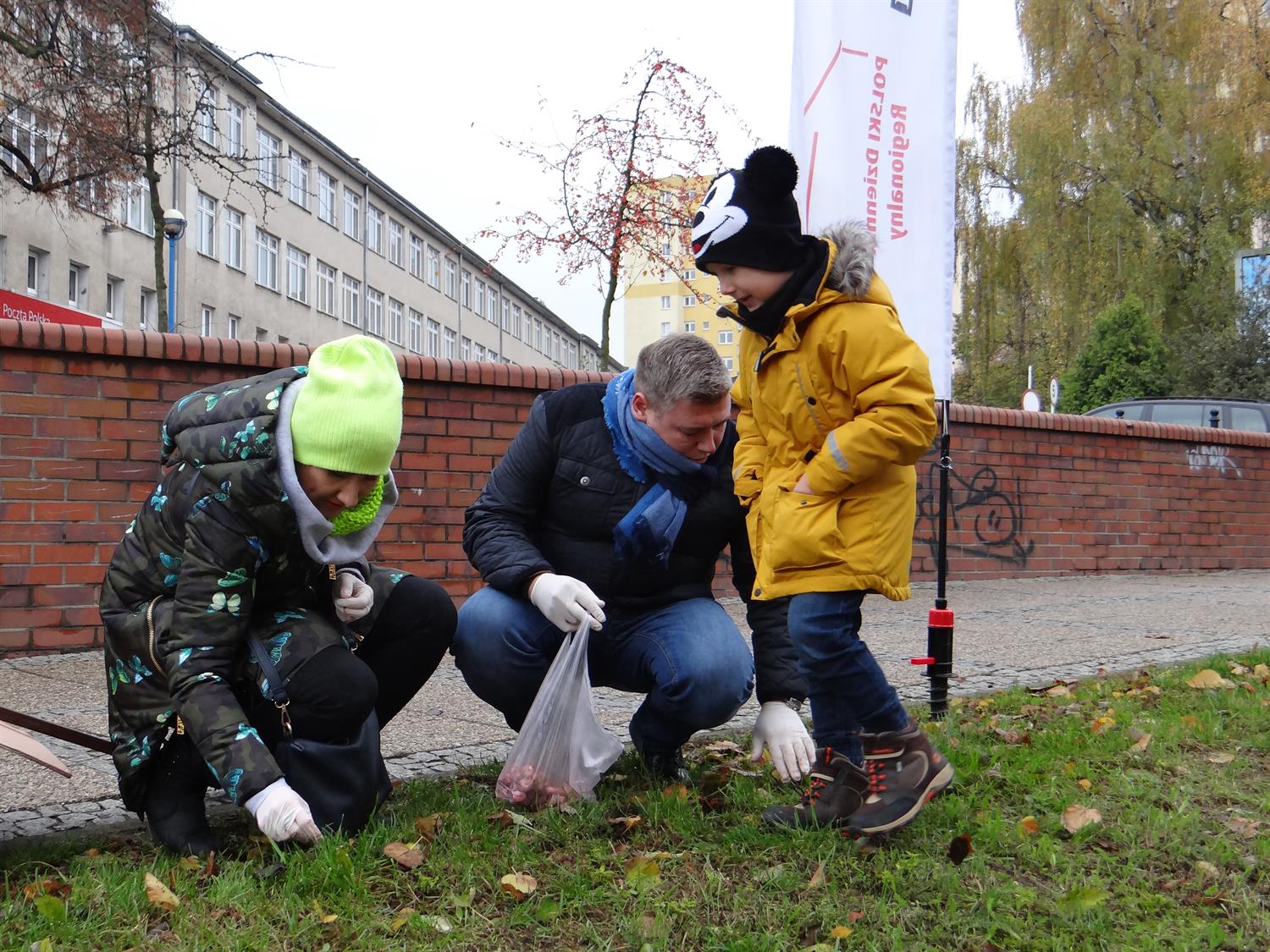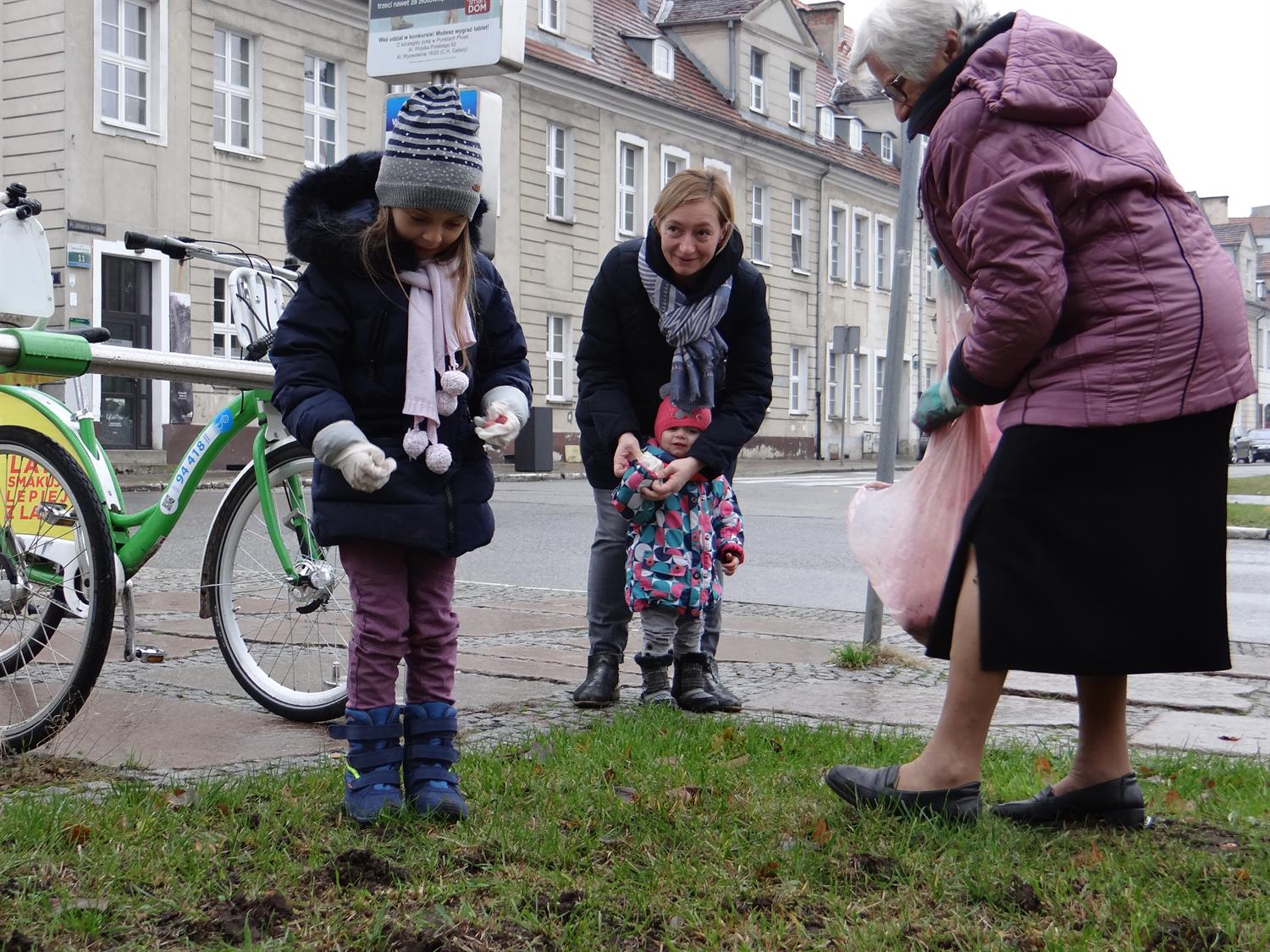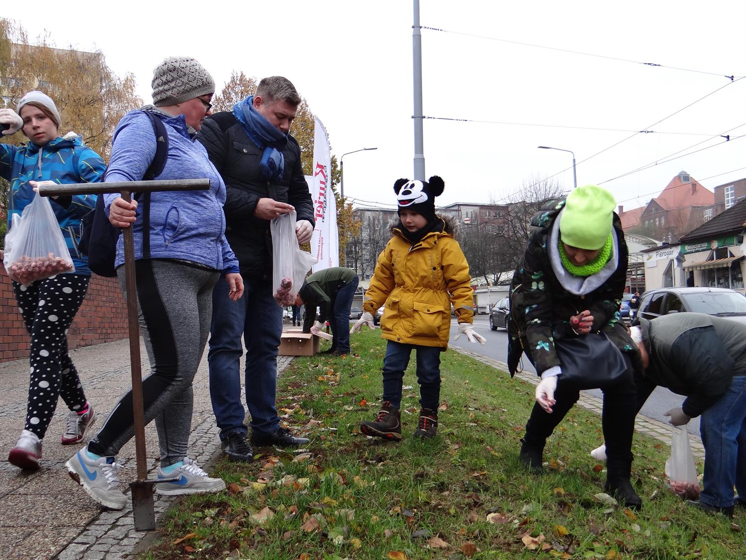 O 1500 kwiatowych cebul wzbogacił się też zieleniec tuż przy dojściu do Zamku Książąt Pomorskich. Do członków Rady Osiedla Stare Miasto z przewodniczącą na czele Małgorzatą Zychowicz-Prus dołączyły niespełna dwuletnia Tosia z 5-letnią siostrą Julianną i ich mama.  Podczas porannego sobotniego spaceru zabrały się ochoczo do sadzenia cebulek pod czujnym i fachowym okiem Sylwiusza Mołodeckiego. Pracy społeczników przypatrywały się turystki z Warszawy, zaintrygowane grupą osób, które mimo deszczu krzątały się na zieleńcu, sadząc kwiaty.