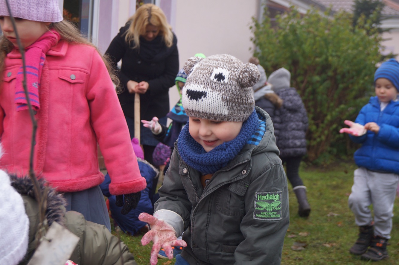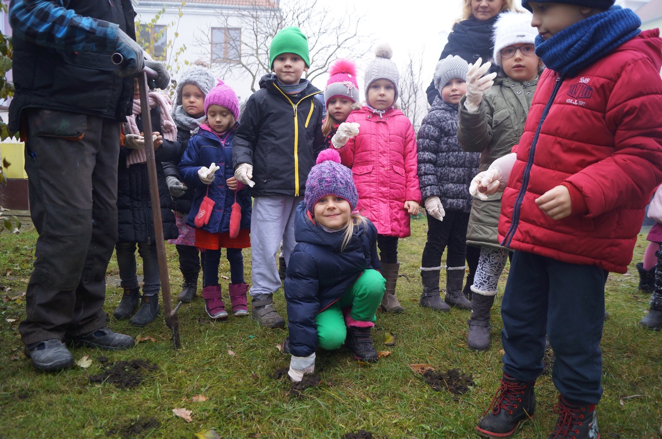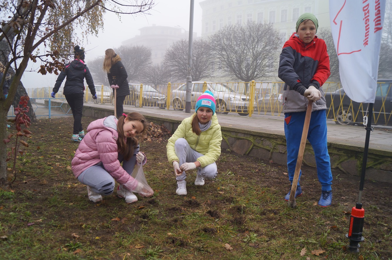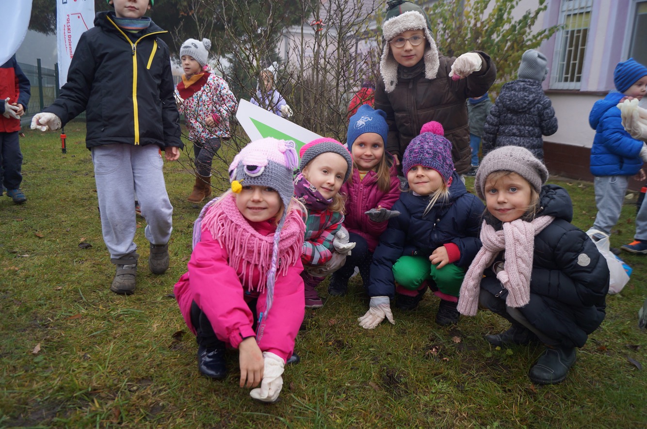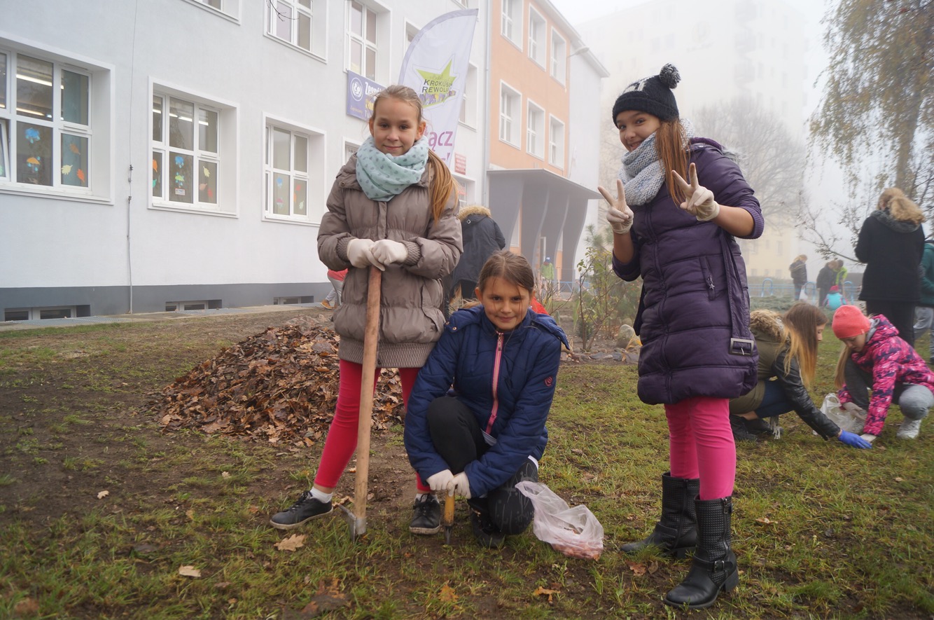 W środowy ranek (23 listopada) krokusowa rewolucja zawitała na ul. Dubois w Szczecinie przed budynek Zespołu Szkół nr 16. Ledwie godzinę później dołączyły do niej żabki, biedronki, promyczki i motylki z przedszkola nr 5 przy ul. Tomaszowskiej, nieopodal Stawu Brodowskiego, nad którym z Czytelnikami naszej gazety w październiku posadziliśmy kwiaty wiosny.