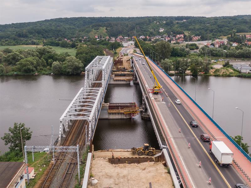 Wykonawca jest już na ostatniej prostej do ustawienia konstrukcji stalowej przęseł nowo budowanego mostu na podporach. Rozpoczęcie montażu podzielonej na trzy sekcje konstrukcji nastąpi już w najbliższych dniach.
