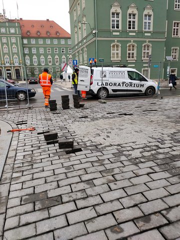 Fakty te potwierdza kierownik budowy Sebastian Bernatowicz: – W tej chwili kładziemy szarą kostkę granitową polską, pochodzącą z kopalni granitu w dolnośląskim Strzegomiu. Mamy podpisane umowy albo z dostawcami, albo bezpośrednio z kopalniami. Każdorazowo przed rozpoczęciem układania obowiązkowo musimy zatwierdzić materiał u Zamawiającego, Przedkładamy deklaracje właściwości użytkowych, aprobaty, wnioski materiałowe. Dokumenty są badane, a kostka oglądana i sprawdzana. Dopiero kiedy uzyskamy akceptację dla materiału, możemy ją zamawiać i układać. Nie ma możliwości technicznej, aby na ulicy znalazł się materiał niepełnowartościowy lub niespełniający warunków kontraktu.