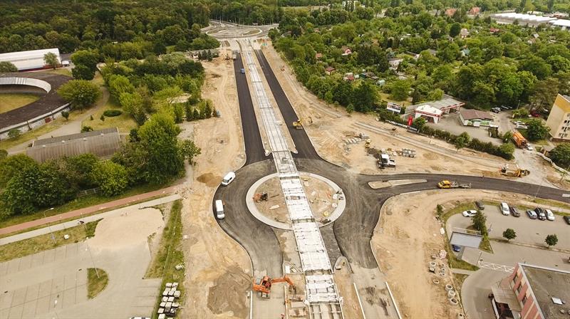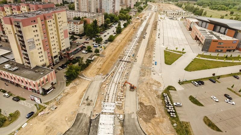 W ostatnich dniach wykonana została podbudowa na rondzie Olimpijczyków oraz na odcinku przylegającym do ronda Wojska Polskiego. W najbliższym czasie planowane jest wykonanie warstwy wiążącej jak również przykrycie warstwą podbudowy prawej nitki nowej jezdni do ulicy Jarzyńskiego. Równolegle prowadzone są prace w zakresie podbudów na lewej nitce. Do ulicy Jarzyńskiego wykonana została także podbudowa pod torowisko na długości około 700 m, równolegle prowadzone są również prace torowe. Eurovia skupiła teraz swoje siły na placu projektowanej pętli, gdzie po zakończeniu prac prowadzonych przy sieciach uzbrojenia na odcinku od ul. Wojska Polskiego do ul. Jarzyńskiego, prowadzone są roboty wodno-kanalizacyjne. Zakończone zostały również prace związane z wykonaniem drenaży pod torowisko klasyczne.