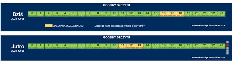 Na stronie internetowej Polskich Sieci Elektroenergetycznych (www.pse.pl) publikowane są informacje na temat tzw. godzin szczytu. Warto oszczędzać energię elektryczną w tym czasie. Określenie godzin szczytu ma kluczowe znaczenie, ponieważ właśnie w tych godzinach każdy może najbardziej wspomóc bezpieczeństwo i ciągłość dostaw energii elektrycznej.