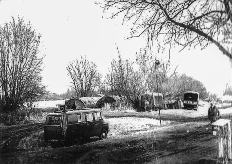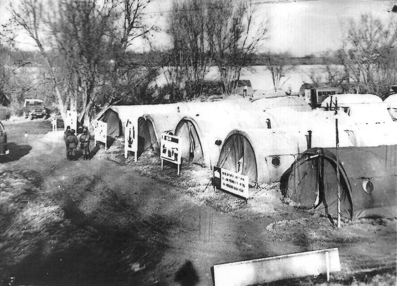 Ponad 300 osób ulokowano na 50-metrowej szerokości pasie ziemi pomiędzy rzeką a wałem przeciwpowodziowym w 8–12-osobowych namiotach bez podpinek, ogrzewanych za pomocą małego piecyka, tzw. kozy, wyłącznie w godzinach nocnych. Miejsce przez internowanych wspominane było jako przerażające na wypadek powodzi nocnej. Pogrupowano ich na cztery kompanie pontonowe i piątą kompanię inżynieryjno‑drogową.