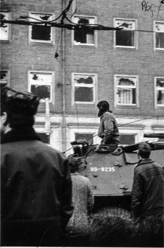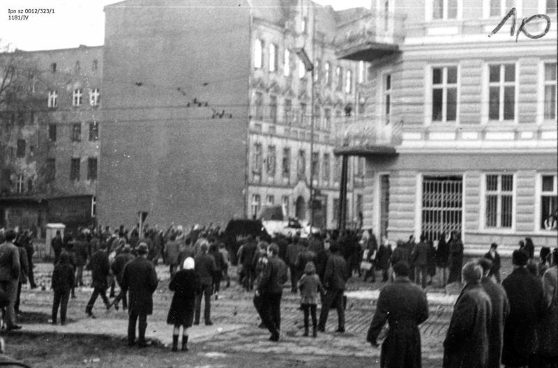 Siły porządkowe, nie chcąc dopuścić, by robotnicy przedostali się do centrum, zaatakowały ich na jednym z najbliższych skrzyżowań. Doszło do gwałtownych starć, w wyniku których milicjanci zostali pokonani. Sformowano kilka następnych pochodów, które za cel obrały budynek KW PZPR przy pl. Żołnierza Polskiego. Około południa zbierający się przy nim ludzie zaczęli rzucać w niego kamieniami i butelkami z benzyną. Spowodowały one pożar, który szybko ogarnął cały budynek. Lucyna Plaugo wspominała: „Ja chodziłam do ogólniaka wtedy na Gumieńcach. Urwaliśmy się szybko na plac Żołnierza. Wyrzucali tam przez okna dobytek KW. Wyciągano portrety, przez chwilę trzymano je na górze, potem powoli spadały na chodnik, na płonący stos. Cieszyłam się, chociaż nie wiedziałam jeszcze, z czego”. Mieczysław Soszyński wspominał o swoich odczuciach, kiedy patrzył na płonący budynek: „Widziałem, jak to wszystko leci, te kwiaty, te meble, i tak dalej, dla mnie to było coś przerażającego, w tym odczuciu, że to mienie się niszczyło. Z tym, że część ludzi brała udział w tym akcie, a część spokojnie się przyglądała. Ta reakcja ludzi mnie zastanowiła, że nikt się nie oburzał i nie protestował”.