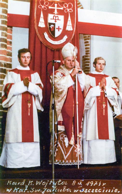 Kontakty z Pomorzem Zachodnim nie miały charakteru wyłącznie turystycznego. We wrześniu 1972 r. przyjechał do Szczecina, aby spotkać się z pierwszym biskupem nowo utworzonej diecezji szczecińsko‑kamieńskiej Jerzym Strobą. Dla Kościoła katolickiego na Pomorzu Zachodnim był to rok szczególny. Ogromny obszar Administracji Apostolskiej w Gorzowie Wlkp. został podzielony na trzy odrębne diecezje: gorzowską, szczecińsko‑kamieńską i koszalińsko‑kołobrzeską. Uroczysty ingres bp. Stroby został zaplanowany na październik 1972 r. Zanim do niego doszło, pod koniec września w Szczecinie pojawił się z nieoficjalną wizytą kard. Karol Wojtyła. Odwiedził nowego biskupa, wzmacniając w ten sposób jego pozycję. Na samym ingresie był nieobecny.