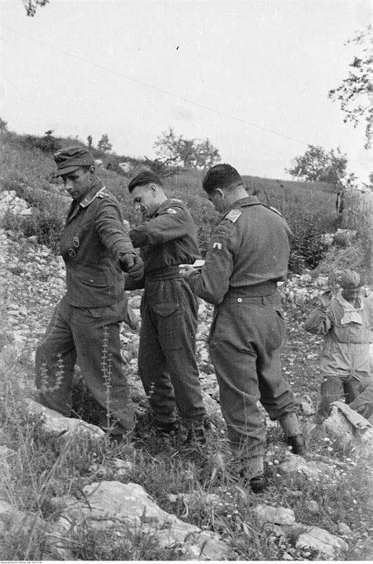 „Około godziny 09.00 18 maja przyszło do nas z doliny spod »Widma« dwóch Niemców z flagą Czerwonego Krzyża. Znając język niemiecki z rozkazu dowódcy baonu przetłumaczyłem cel ich przyjścia. Okazało się, że są w schronach, że mają rannych, że są bez wody i chcą się poddać. Na moje pytanie dlaczego rannych przed tym nie ewakuowali odpowiedzieli, że wszystko jest skończone i że sanitariusze i oficerowie już dawno ich opuścili. Sami są Austriakami z południowego Tyrolu i nie są ochotnikami. Wysłaliśmy razem z nimi dwóch sanitariuszy każąc wracać na naszą wysokość, co bardzo chętnie uczynili. Za chwilę 24 Niemców, w tym dwóch ciężko rannych i czterech lżej rannych, ruszyło w naszą stronę. […] W listach znalezionych przeze mnie w schronach i u zabitych Niemców przebija ciągle to samo: »czy otrzymałeś« paczkę i czy to lub owo było zdatne jeszcze do jedzenia i narzekania, że tak długo nie otrzymuje urlopu. Niemiec, który został na [wzgórzu] [San] Angelo i rano dnia 19 maja się poddał, opowiadał mi, że jest ze 100. pułku. Na moje pytanie dlaczego tak długo stawiali opór odpowiedział, że rozkaz brzmiał trzymać pozycje do nocy dnia 18 maja [19]44 r. i że sam zugführer [dowódca plutonu] złapał za Spandau i prowadził ogień, »zresztą musieliśmy się bronić, bo wyście ciągle atakowali«”.