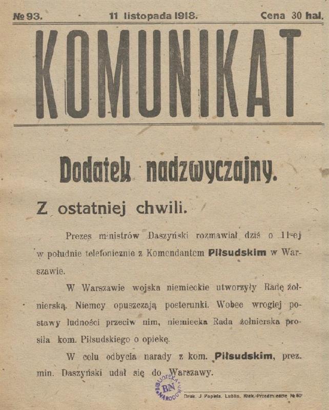 Nasz Dzień Niepodległości słusznie jest świętem radosnym. Odzyskanie wolności i powstanie państwa to trochę taki pierwszy „cud nad Wisłą”, który dokonał się na przełomie października i listopada 1918 r. Okres ten przeżywany był euforycznie przez większość Polaków, mimo biedy czasu wojennego i świadomości licznych zagrożeń. Nastroje panujące na ziemiach polskich na początku listopada zilustrujmy fragmentem wspomnień ówczesnego oficera byłej armii austriackiej Walerego Maryańskiego: