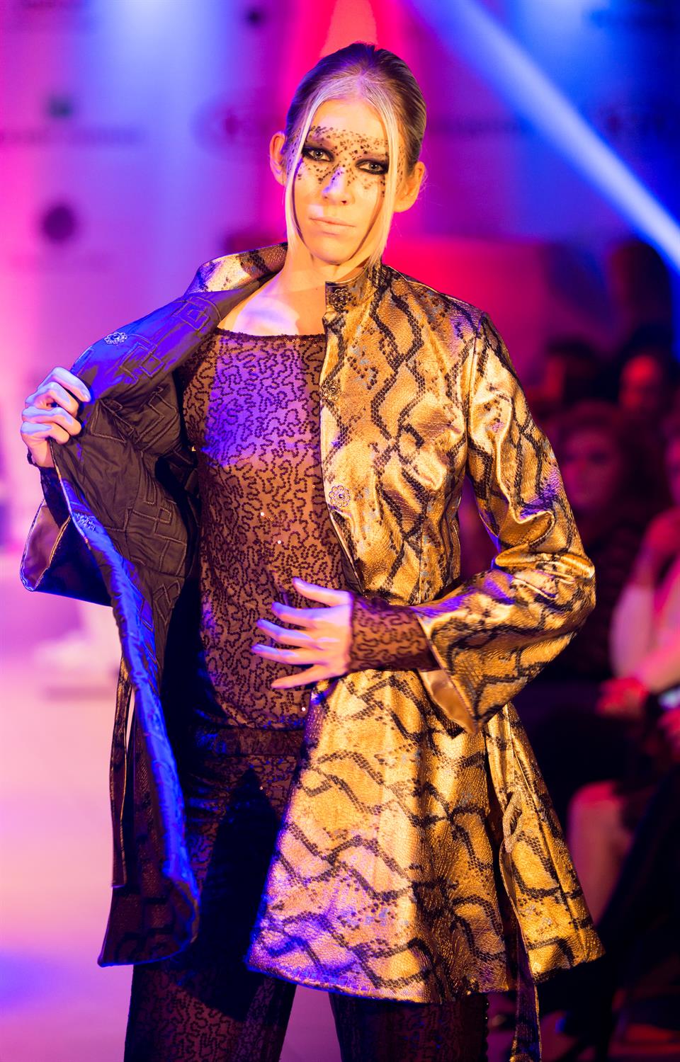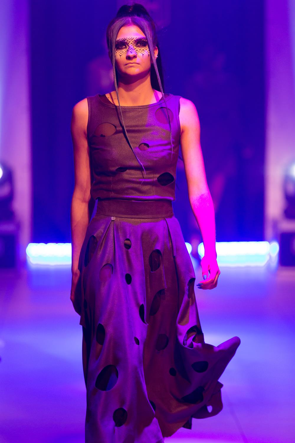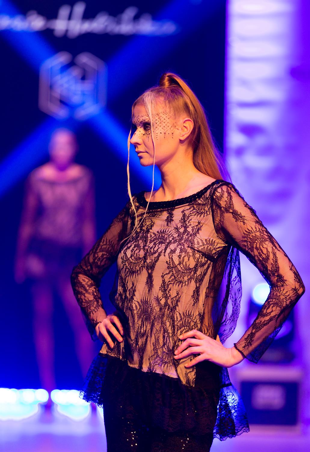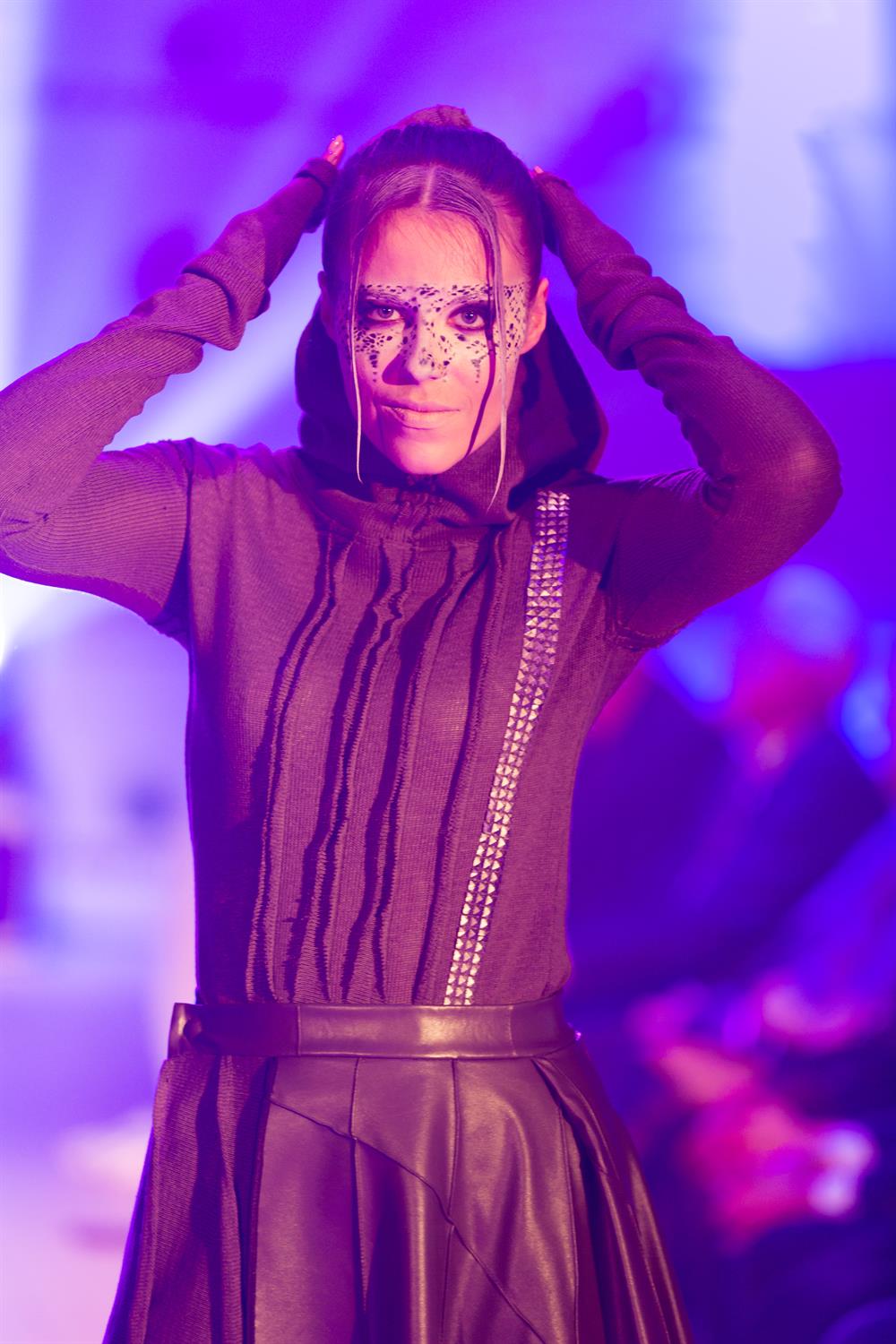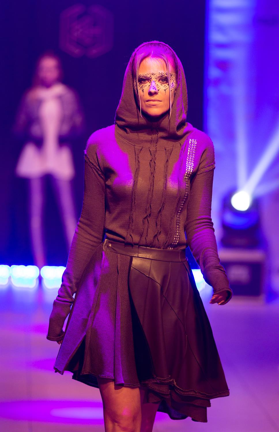 - Z pomysłami jest bardzo różnie, bywa że przychodzą w najmniej spodziewanych momentach. Tym razem impulsem była gra komputerowa, podpatrzona u córki. Mroczne, tajemnicze, niebezpieczne, złowieszcze klimaty mnie zainspirowały. Musiałam znaleźć tkaniny nadające się do tego typu projektów, dobrać odpowiednie dodatki. Szczegóły są w tym momencie bardzo istotne. Co chwilę przychodziły do głowy nowe koncepcje, trzeba było decydować co jest ważne, a co nie. Całości dopełnił make up i fryzury – opowiada Kasia Hubińska.
