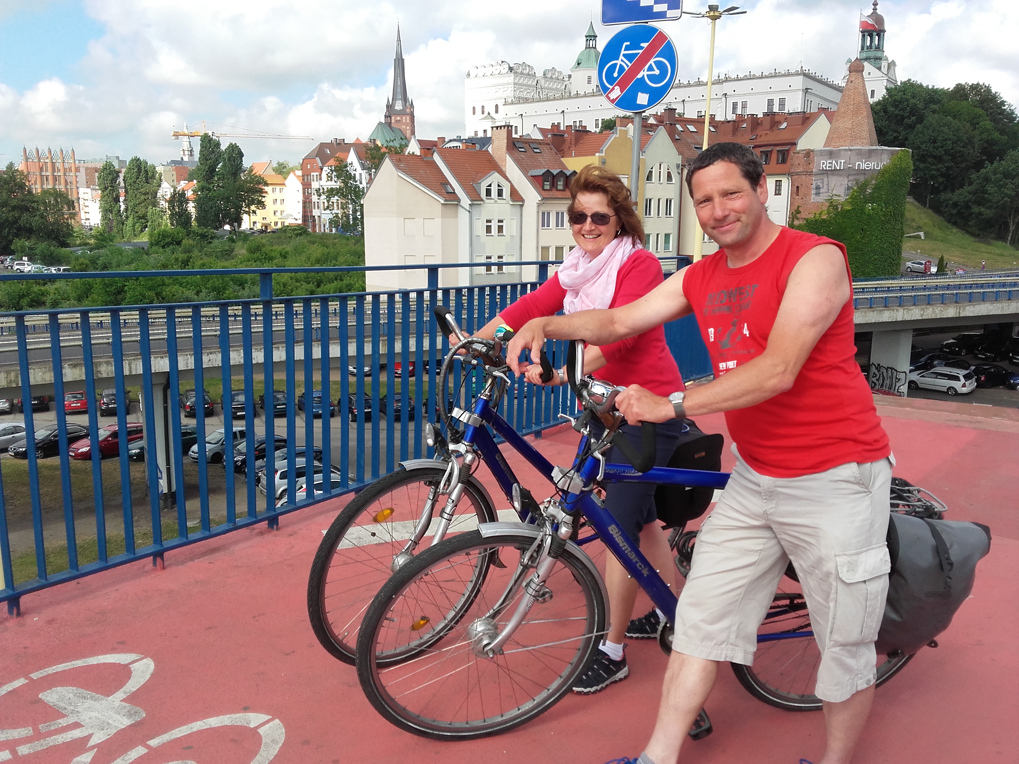 Na zdjęciu: Państwo Lück podczas rowerowej wycieczki po Szczecinie.