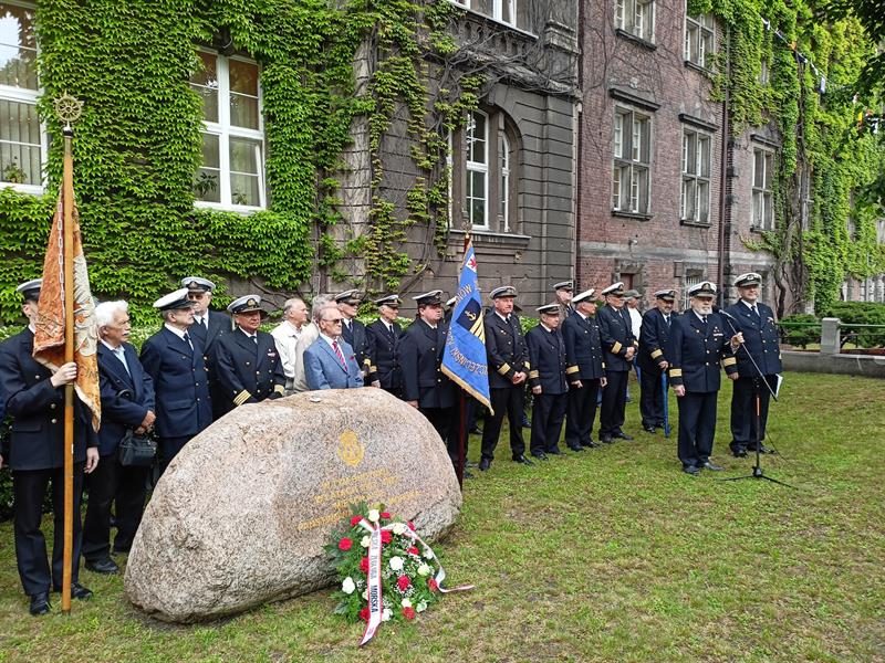 Ostatniego dnia obchodów 75-lecia historii szkolnictwa morskiego na Pomorzu Zachodnim, czyli 1 czerwca br., absolwenci szkół morskich spotkali się przy kamieniu upamiętniającym powstanie Państwowej Szkoły Morskiej w Szczecinie – przy głównym gmachu Akademii Morskiej w Szczecinie na Wałach Chrobrego.