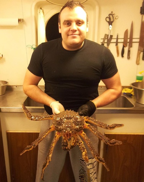 Poniżej: Krab królewski złapany w Morzu Barentsa. Seweryn pracował na statku sejsmicznym jako kucharz.