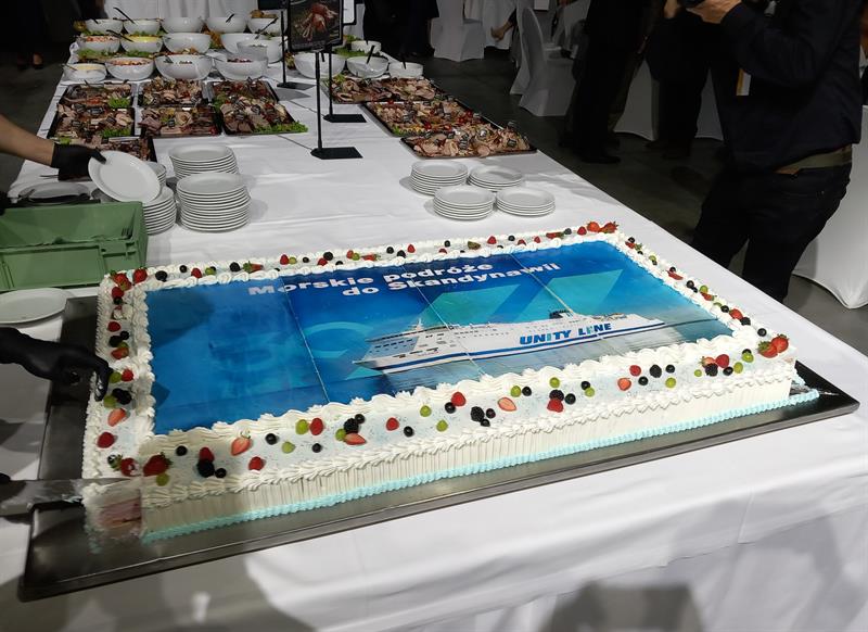 Okolicznościowy tort ufundowała spółka Unity Line, obchodząca swoje 30-lecie.
