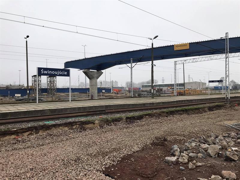 Zarząd Morskich Portów Szczecin i Świnoujście modernizuje terminal promowy w Świnoujściu przystosowując go do obsługi transportu intermodalnego (przewozu ładunków wykorzystującego różne środki transportu). Prace idą pełną parą. Właśnie się pojawiło pierwsze przęsło nowej estakady nad stacją kolejową Świnoujście. Estakada skomunikuje zaplecze z terenem terminalu.