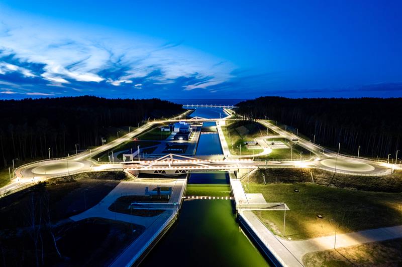 Inwestycja objęła także budowę układu drogowego z dwoma obrotowymi mostami. Dzięki nim ruch statków nie zakłóci ruchu samochodowego nad kanałem żeglugowym. Łączna długość każdego mostu wynosi ponad 60 m.