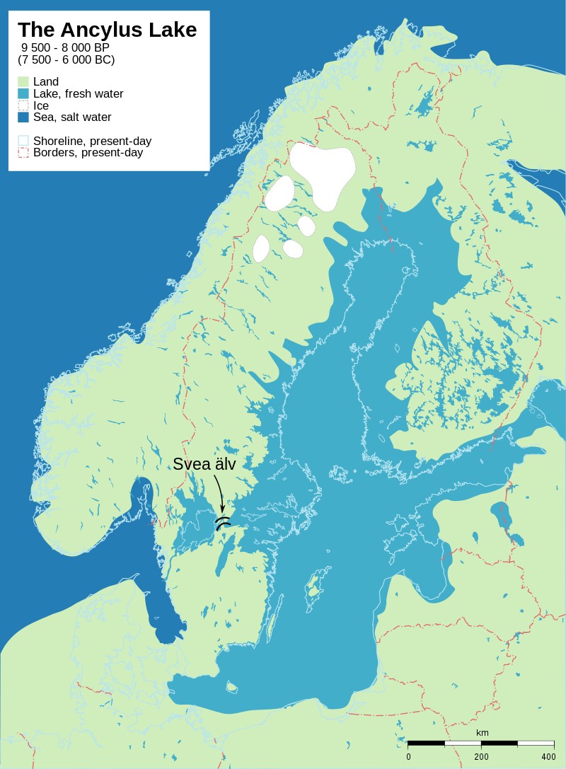 Wraz z ustępowaniem lądolodu zaczął zachodzić inny proces geologiczny, który miał szybko zakończyć istnienie Morza Yoldiowego. Uwolniona od ciężaru masy lodu skorupa ziemska zaczęła się unosić. Nie wszędzie proces ten przebiegał w tym samym tempie. Skandynawia podnosiła się szybciej niż dno Morza Yoldiowego. W efekcie około 9 tys. lat temu znowu zostało ono odcięte od wód oceanu. Zbiornik wciąż był zasilany przez rzeki i strumienie, które swój początek brały w resztkach topniejącego lodowca. Wkrótce więc morze ponownie zmieniło się w słodkowodne Jezioro Ancylusowe. Podobnie jak na poprzednim etapie, swoją nazwę wzięło od żyjącego w nim zwierzęcia – ślimaka przytulika Ancylus fluviatilis. Wyginęła w nim słonowodna fauna, która została zastąpiona przez słodkowodne gatunki. Pomimo znacznego podniesienia się temperatur świat zwierzęcy w zbiorniku nie był zbyt bogaty.