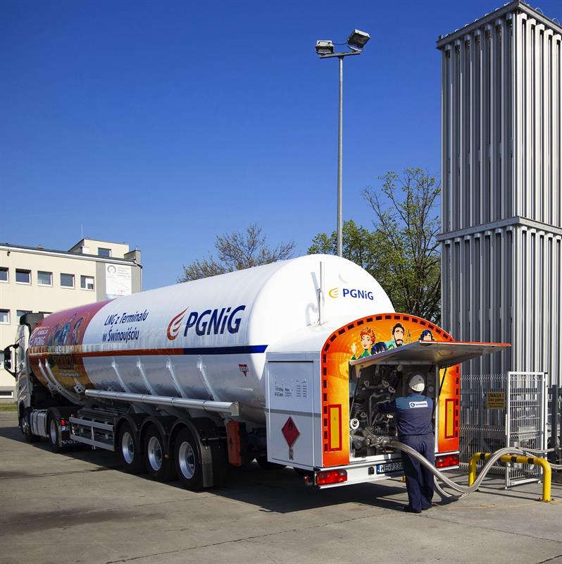 Liczba cystern z LNG, które wyjechały z terminalu w Świnoujściu, przekroczy do końca marca tego roku 7000. Obecnie na terminalu tym możliwy jest załadunek na cysterny i na tzw. kontenery ISO. Transport odbywa się drogami lądowymi. Stosowane są specjalne cysterny kriogeniczne lub kontenery dostosowane do przewozu LNG.